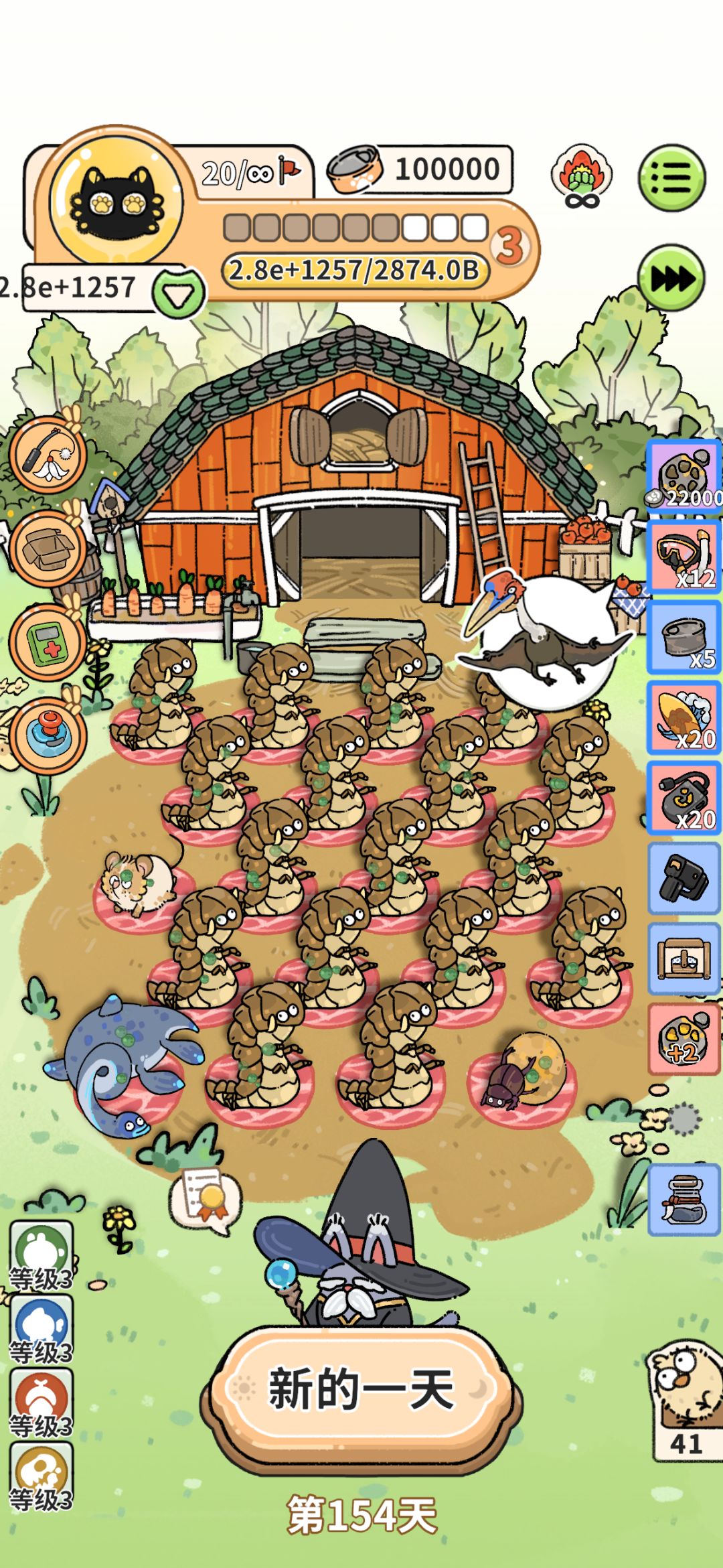 六阶段之前遇到下蛋和喜鹊的道具可以锁一下,等喜鹊来了再买;基本上六级前只买涨利息道具以及一级有蹄族成长,然后就看手气刷到的野猪够不够支撑到六阶段,最关键就是六阶段前是否出喜鹊。七阶段开始喜鹊能下单稳定增长的话就买老虎吃有蹄族,过渡到八九阶段然后就是看手气能不能刷出恐怖鸟🌚有了恐怖鸟可以把喜鹊道具卖了买群聚宝珠。恐怖鸟不能稳定下蛋之前买了幻影宝石的一定要卖了,不然恐怖鸟会被变走🌚没有晒肉架就不要买剑
