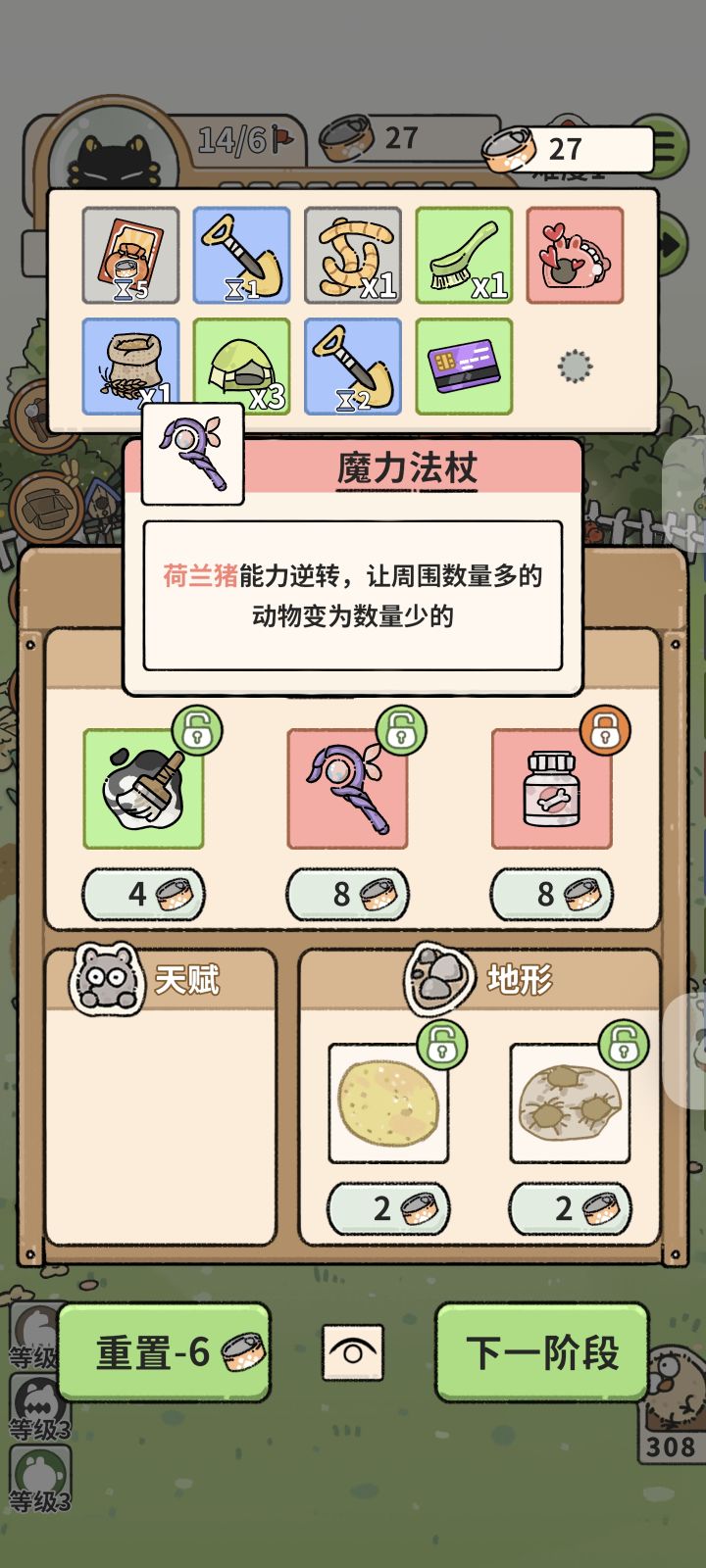 #猫神牧场攻略 #猫神牧场 省流:繁殖+合成叠加满级鼩鼱×3²(×9),杰瑞+刺猬翻倍奖励实操: 准备段:带如图三的四个道具(不一定按我的来)纸箱子(必带):罕见动物买图四垂耳兔,道具我带的金铲铲逗猫棒用法:前期猫神带福宝来罐头快,配合不倒翁吃利息(罐头攒到50就开花)如图六①银行卡赚取大量罐头中后期删动物大量商店刷新做准备,逗猫棒后换猫神带吉格斯或督头李开