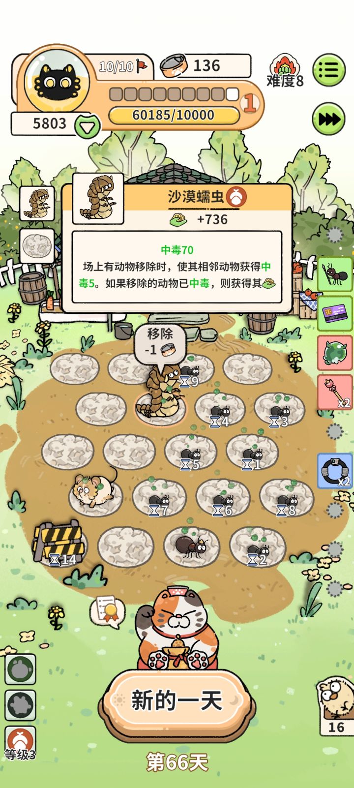 这个玩法好简单基本上牧场和沙漠每个难度都能过,神奇一定要带纸盒子和饭盆,一上来选蚁后和健身环,多刷新几次总归有的,然后开局把所有能删的全删掉只留蚁后和蚂蚁,然后慢慢刷,猫可以带那个快速推阶段的,基本上几分钟一关#