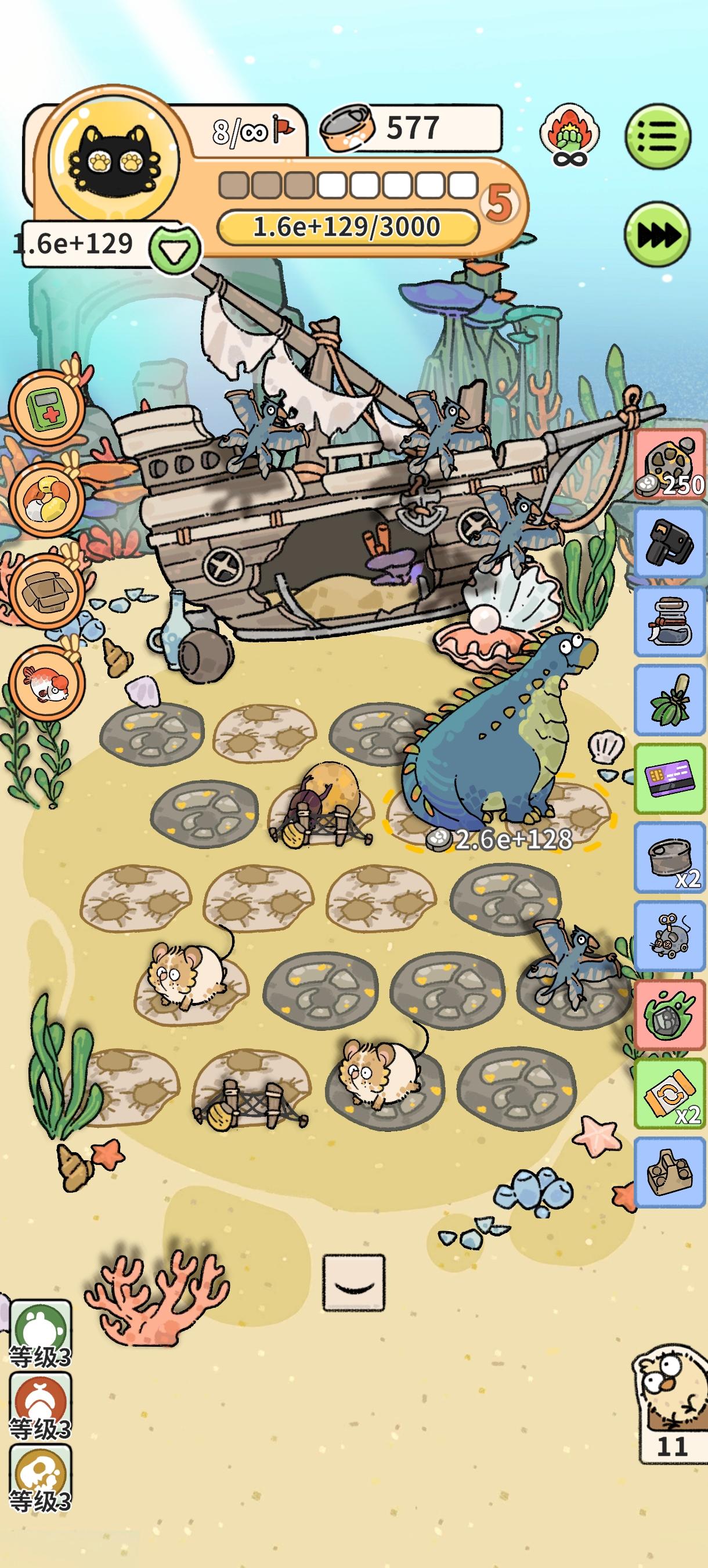把某位猫友的阵容实践了一下,这游戏就太无聊了!想弄多少弄多少,没有止境了,只是一个数值。小盗龙+杰瑞+屎壳郎+泰坦巨龙。一玩一个不吱声。第8天就可以通无尽的尽头#游戏推荐 #游戏日常 攻略