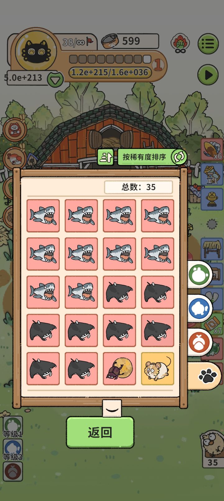 上图排名只是坛主随便打的小号本攻略经过多方对比,刷钱速度堪称前几(包括脚本),有些罗嗦,但是看完可以帮各位少侠无限模式想冲多少冲多少,废话不多说,正片开始局前准备:1.玩具选不倒翁,大饭盆,纸盒子,第四个随意。选按钮摇杆或者激光笔都行2.角色选督头李3.流派选有蹄,鼠兔和爬行开局:利用刷新机制,使开局三个动物有一只小花枝鼠,接着,用纸盒子选一只垂耳兔加一个金铲子,然后用督头李锁定垂耳兔,最后