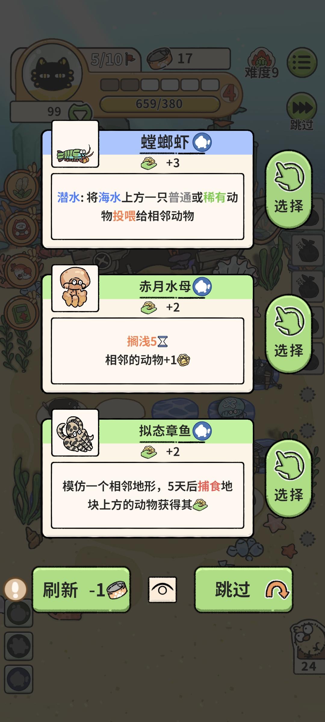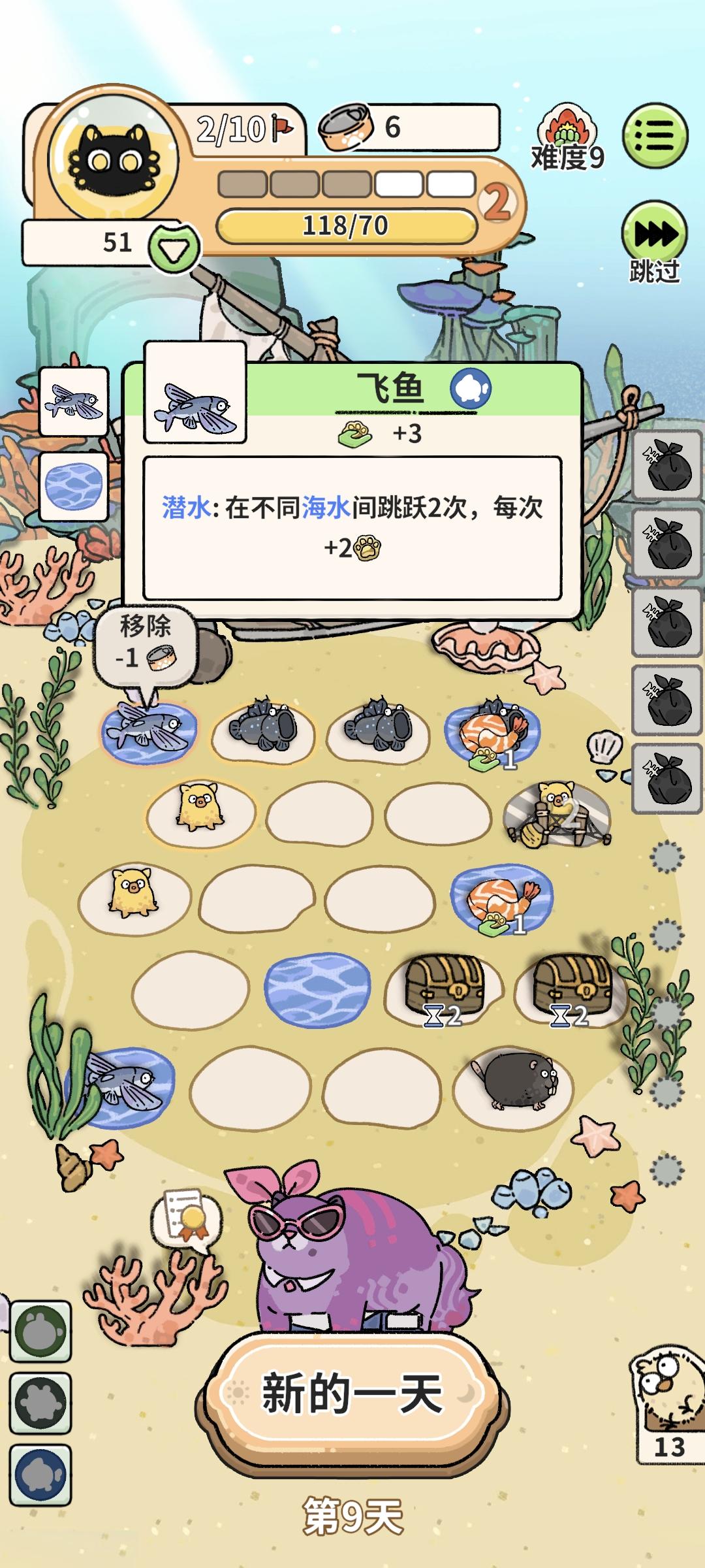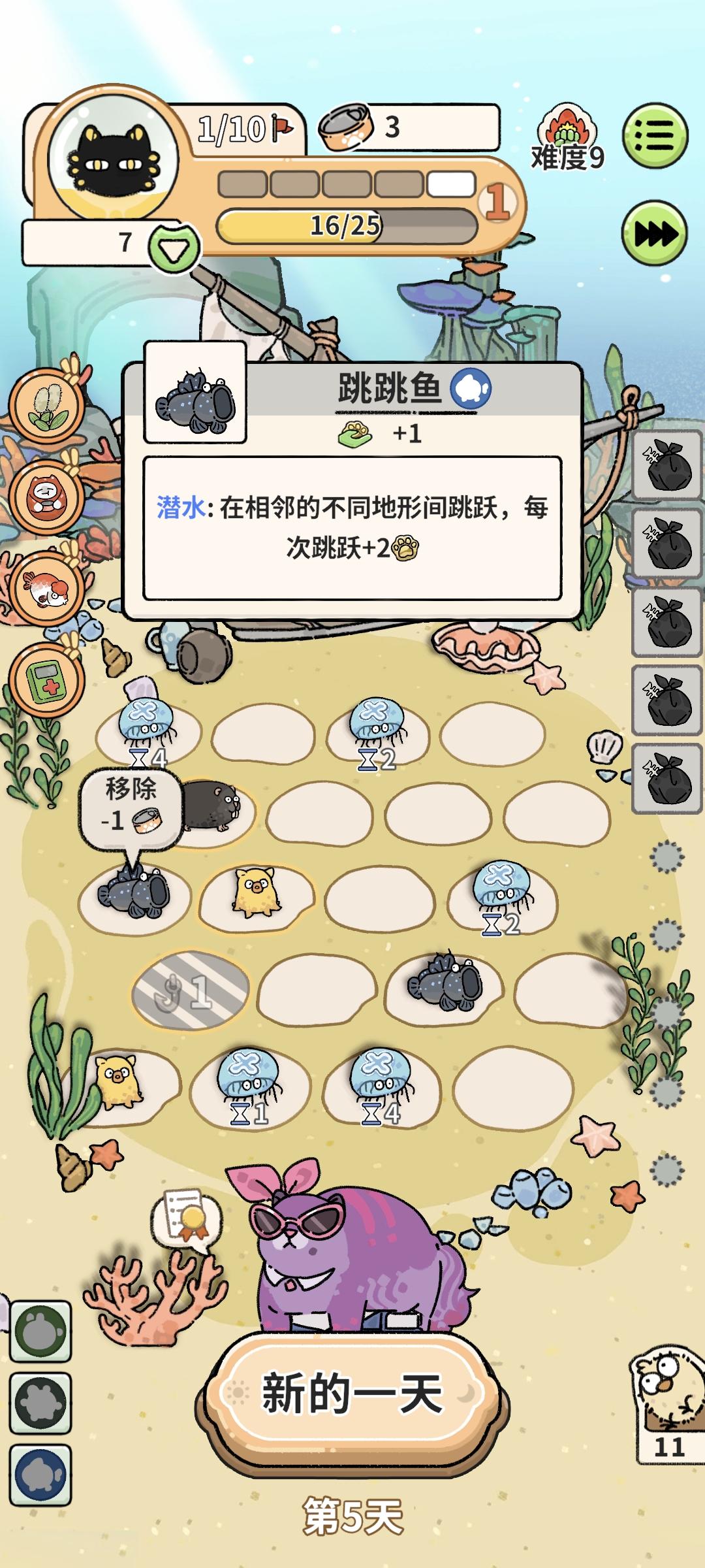 #游戏攻略 #猫神牧场 #猫神牧场攻略 #猫神牧场测试 ,咱们首先先按照如图选好玩具,毕竟咱飞鱼无法像蜥蜴夫妇一样刷出来罐头,猫神选这个丽莎刚好和第三个宝物抵消了。 1.我们可以sl一下水母,就是选项的重新开始,最后场上有水母,因为我们要靠水母早点把地形变成海。2.开局我们可以拿章鱼宝宝过渡一下,跳跳也可以酌情选择,然后顺利度过前期,切记一定不要在前期点了海洋天赋,这样会让水母不会再陆地上搁