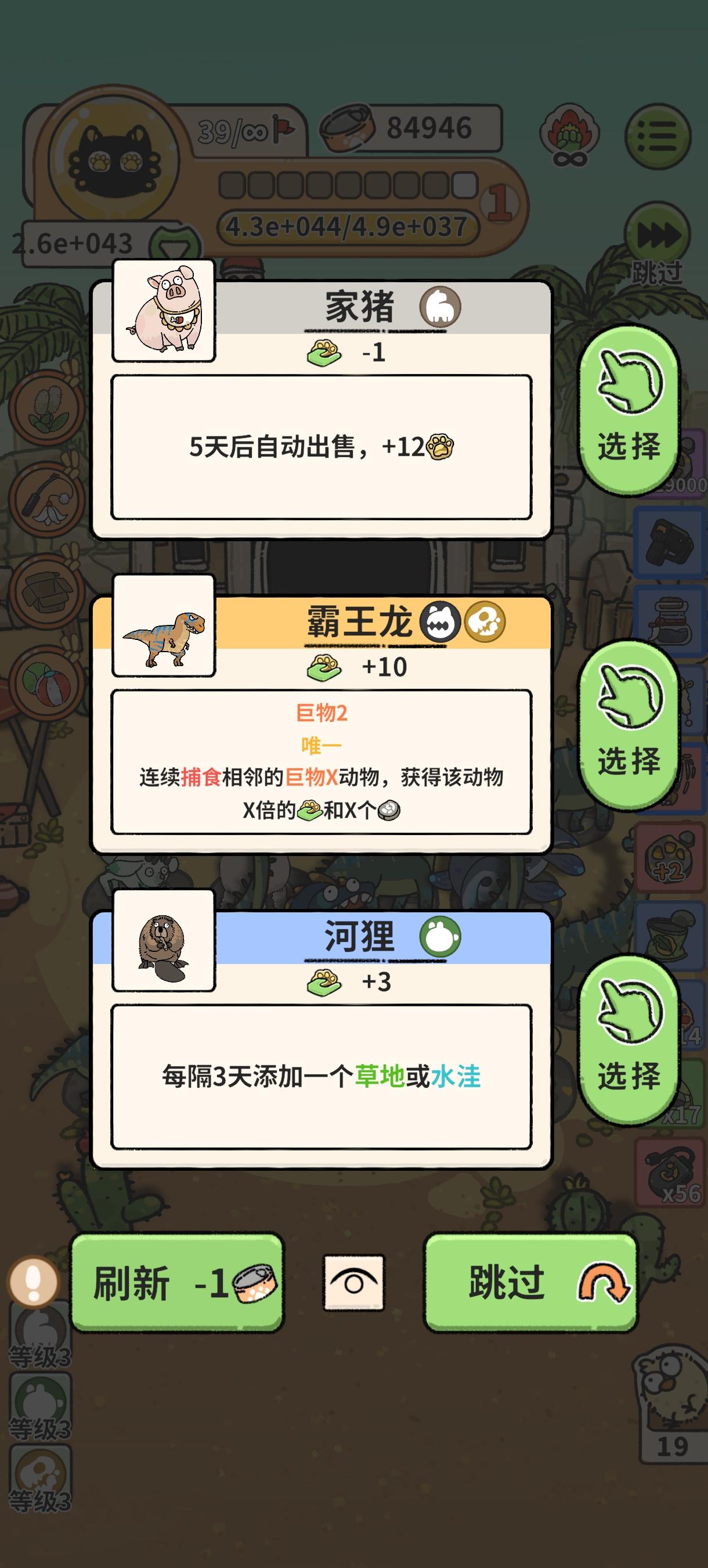 沙漠牧场(不论难度100%过) 【核心:“眼镜蛇”+道具“异常糖果”+食肉动物“湾鳄”/“剑齿虎”/“貂”/“猫头鹰”/“鹰”(这几个食肉动物随便选,最优“湾鳄”→“鹰”最差)】 开始1~4选“鼠”“兔”等繁殖快的,4开始选“食肉动物”吃鼠兔,期间可以慢慢叠“眼镜蛇”了, 同时!!!一定要先多刷商店买下“异常糖果”!!! 一定要买道具“异常糖果”!!! 之后随便玩。 期间攒“蝰蛇”。