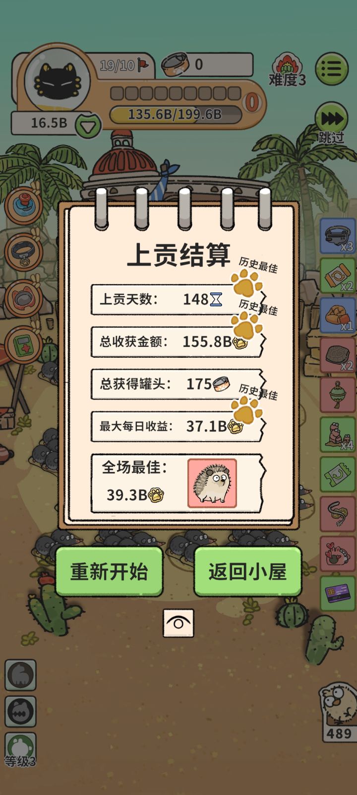 先上图,点到不想点了,罐头算是10万溢出的,pc端同样阵容拿过1100+天还没到达极限#开局玩具>必选:逗猫棒+纸箱子(拿化石扫描仪<获得化石数量x2>+垂耳兔)次选:伊丽莎白圈,电动摇杆(我超级喜欢配合这两个)角色:大骰(5阶段转克鲁克山)局面:必须要场上有迅猛龙(可以的话用大骰技能给它刷一下获得化石数量)#初期场上迅猛龙<3只时优先选择迅猛龙,>3时选择小盗龙,当场上小盗龙持有