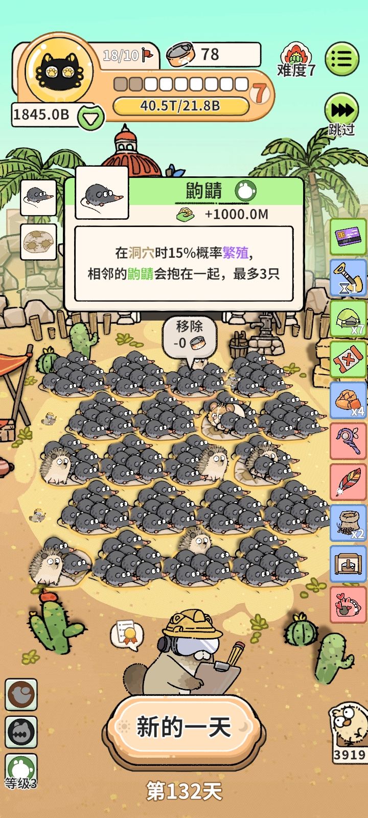 开局使用不倒翁吃利息然后鼠兔疯狂繁殖,然后刷新🔄出现剑齿虎➕道具破碎魔镜 即可出现多个剑齿虎 最好刷出羊圈➕晒肉架➕消化饼干等提升赚钱速率即可达成剑齿虎爽吃无限流#猫神牧场攻略