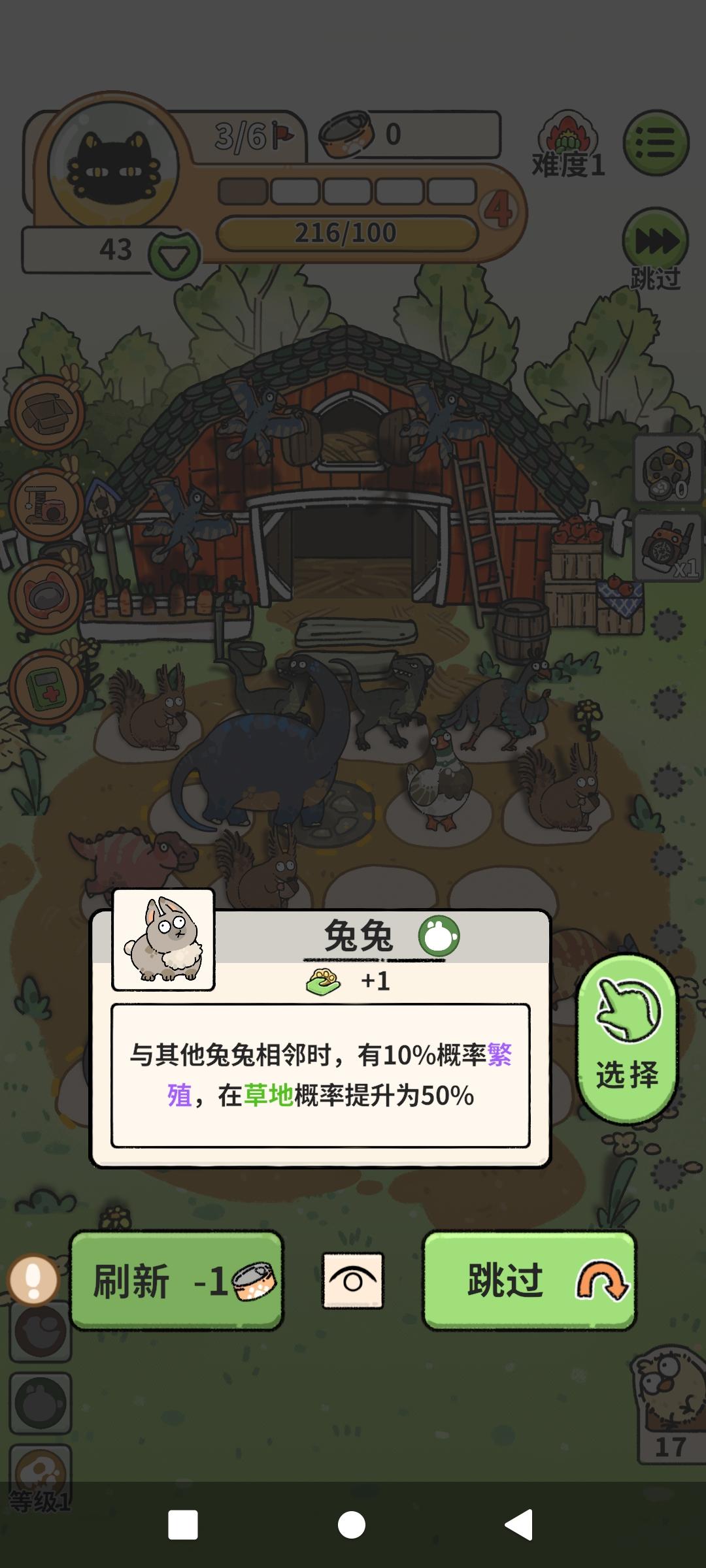 我是新手玩家,如果有说错慢慢改正首先先过图,获得纸箱子(开局选择一个蓝色动物和蓝色道具),下图开局选择喜鹊和玉米粒(每回合获得一只鸽子),然后无脑刷,把没用的动物卖了,二十个动物之后把玉米粒卖了,太多动物不行!下图刷到阶段六或者阶段七,绝迹(黄色动物)刷出率高于2%,开刷恐怖鸟,后续无限刷恐怖鸟就行。道具选择:普通:选择经济道具(彩票,信封,午餐)绿色:加固泥巴和鸟居(必须恐怖鸟之后再