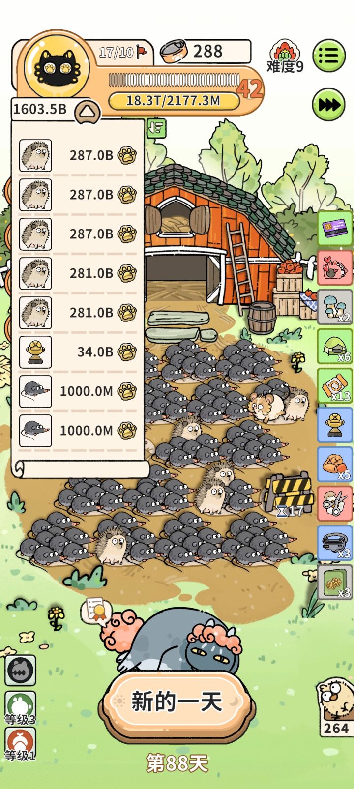 蚂蚁流这个真的五分钟左右就刷完一关,难度9都可以超快过关 P1:可以直接照搬P1的家族、玩具和猫神以下是必备,别的可以替换:虫虫家族只需要蚂蚁和蚁后道具必备纸箱子P2、P3:开局选一个动物(蚁后)一个道具(健身环)然后就是点三倍速跳过,剩下的动物也不需要选了,直接跳过跳过,金币满了就点懒懒,很快就过关了。但是这个只适合快速通关,不适合无尽模式#猫神牧场 #猫神牧场攻略