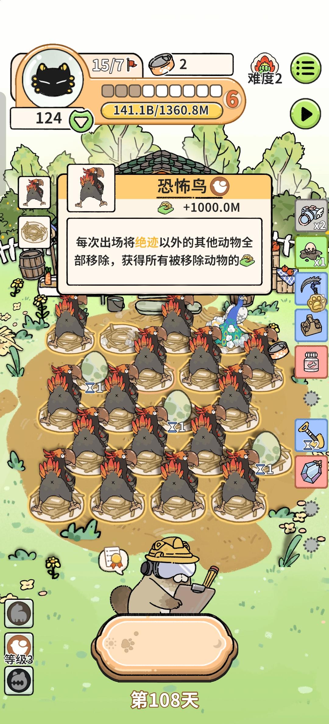 我是新手玩家,如果有说错慢慢改正首先先过图,获得纸箱子(开局选择一个蓝色动物和蓝色道具),下图开局选择喜鹊和玉米粒(每回合获得一只鸽子),然后无脑刷,把没用的动物卖了,二十个动物之后把玉米粒卖了,太多动物不行!下图刷到阶段六或者阶段七,绝迹(黄色动物)刷出率高于2%,开刷恐怖鸟,后续无限刷恐怖鸟就行。道具选择:普通:选择经济道具(彩票,信封,午餐)绿色:加固泥巴和鸟居(必须恐怖鸟之后再