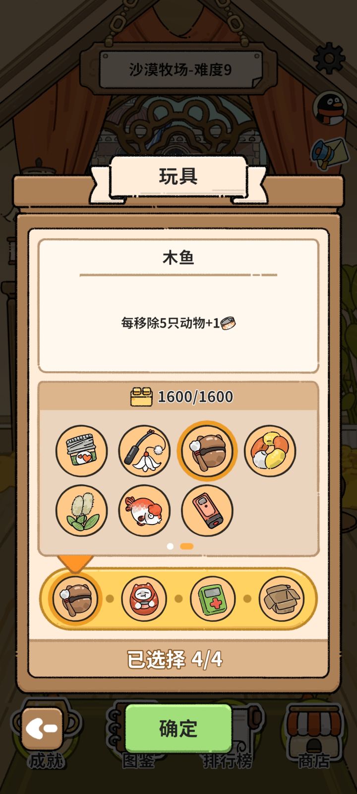 道具选择如图木鱼 每移除5只动物+1个罐头不倒翁 每拥有5个罐头,额外获得1利息纸箱子 游戏开始时选择1个罕见动物和道具电动摇杆 每天免费刷新1次动物猫神选择夜鲨开局道具选择健身圈开局动物选择蚊后然后每天用猫神技能移除一只收益最高的蚂蚁然后剩下的自由开发吧一般情况下5回盒可实玩罐头自由#猫神牧场 #猫神牧场阵容