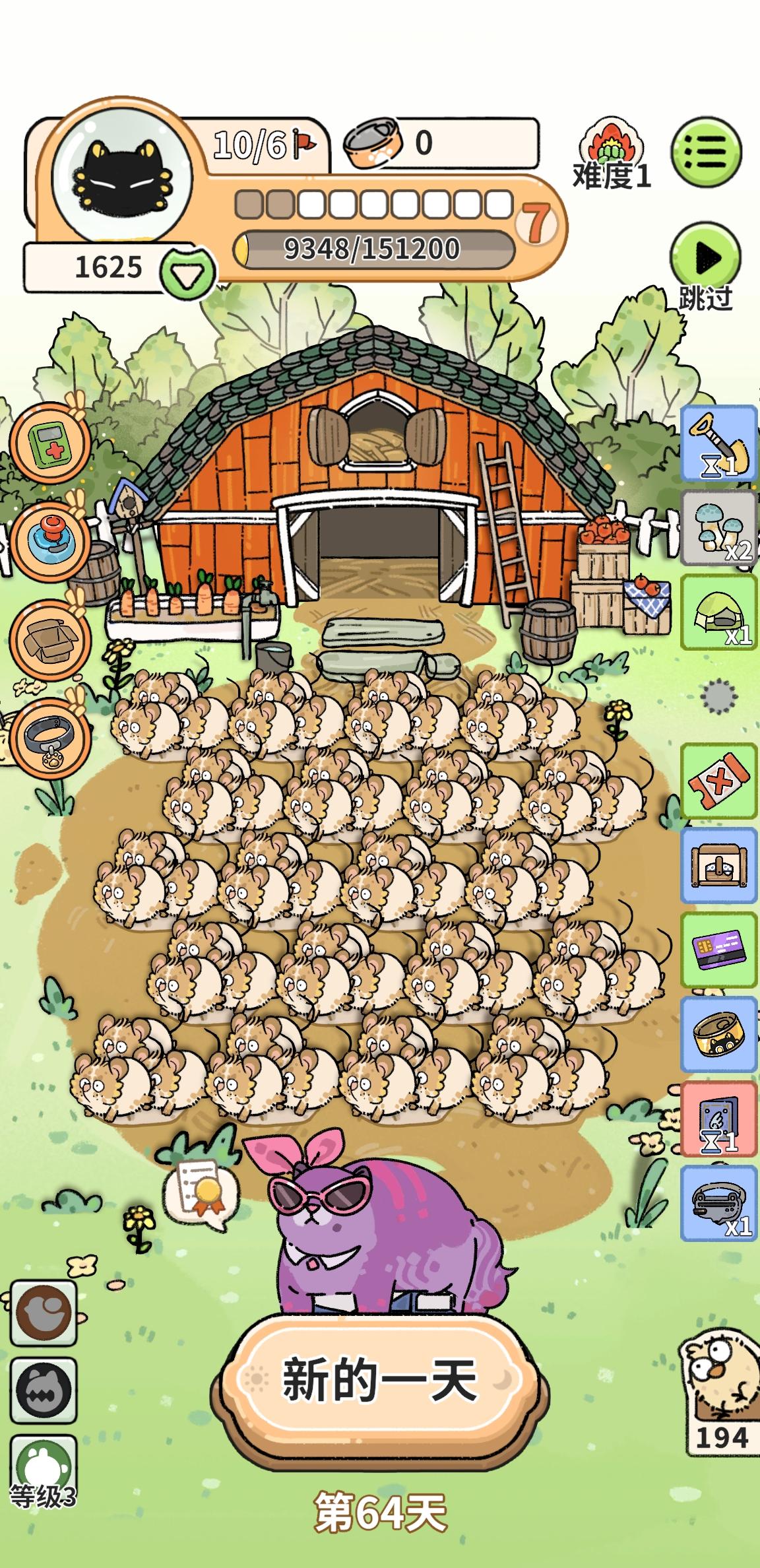 要求很低也比较稳定 猫神带给奖券的方便后面刷杰瑞,种族带禽+鼠,必要玩具纸箱,开局选玉米粒,然后一直下一天铺满鸽子,到八或九阶段刷一个杰瑞上场,继续下一天直到结束,一般五六分钟一把 #猫神牧场攻略