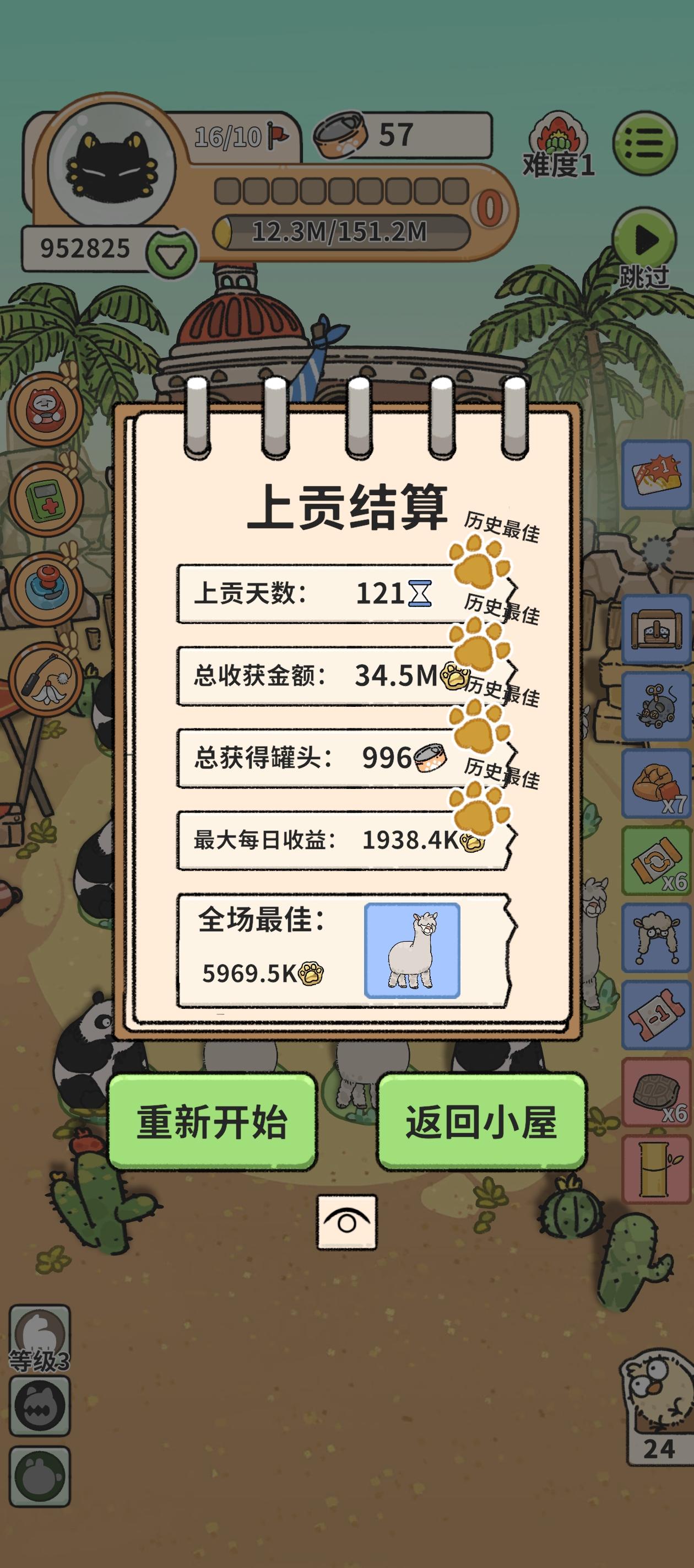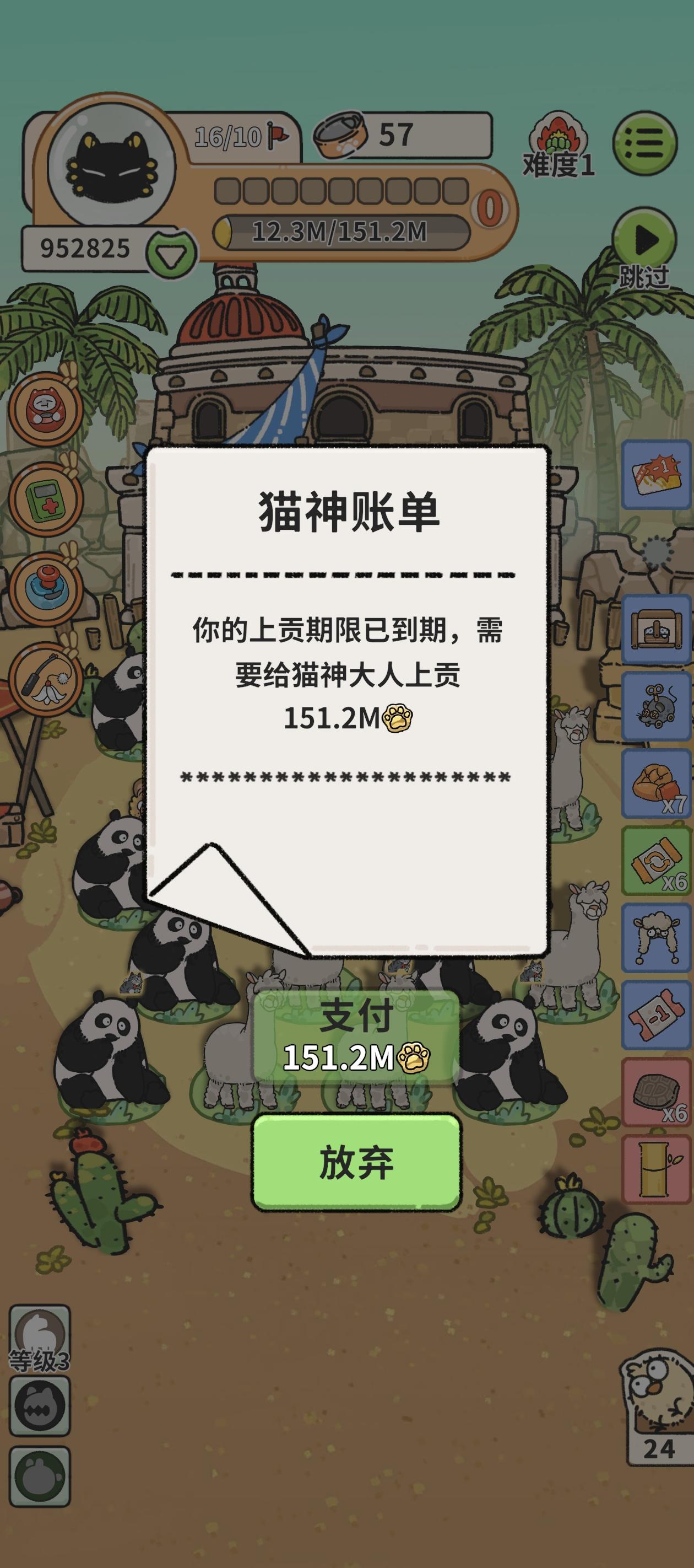 每次上贡增加的金币简直太离谱了分享我的一下配置家族:有蹄,食肉,鼠兔猫神:福宝,触发逗猫棒时换汤米地形:1个洞穴,其余草地天赋:有蹄家族1级就够了,最好三级玩具:不倒翁,电动摇杆,幸运按钮,逗猫棒道具:快乐沙发,羊驼帽,金竹子(必选)重置券,银行卡,打折卡,玩具鼠,黄金罐头等次选(优选增加猫罐头的)思路:开局正常以有蹄动物攒金币上贡,前三次上贡的猫罐头不要乱买,除了升级有蹄家族天