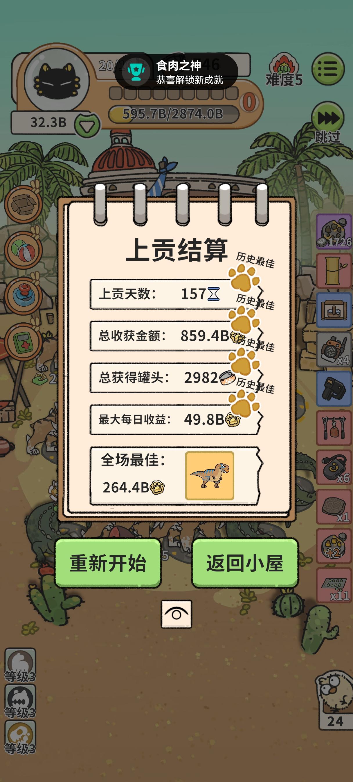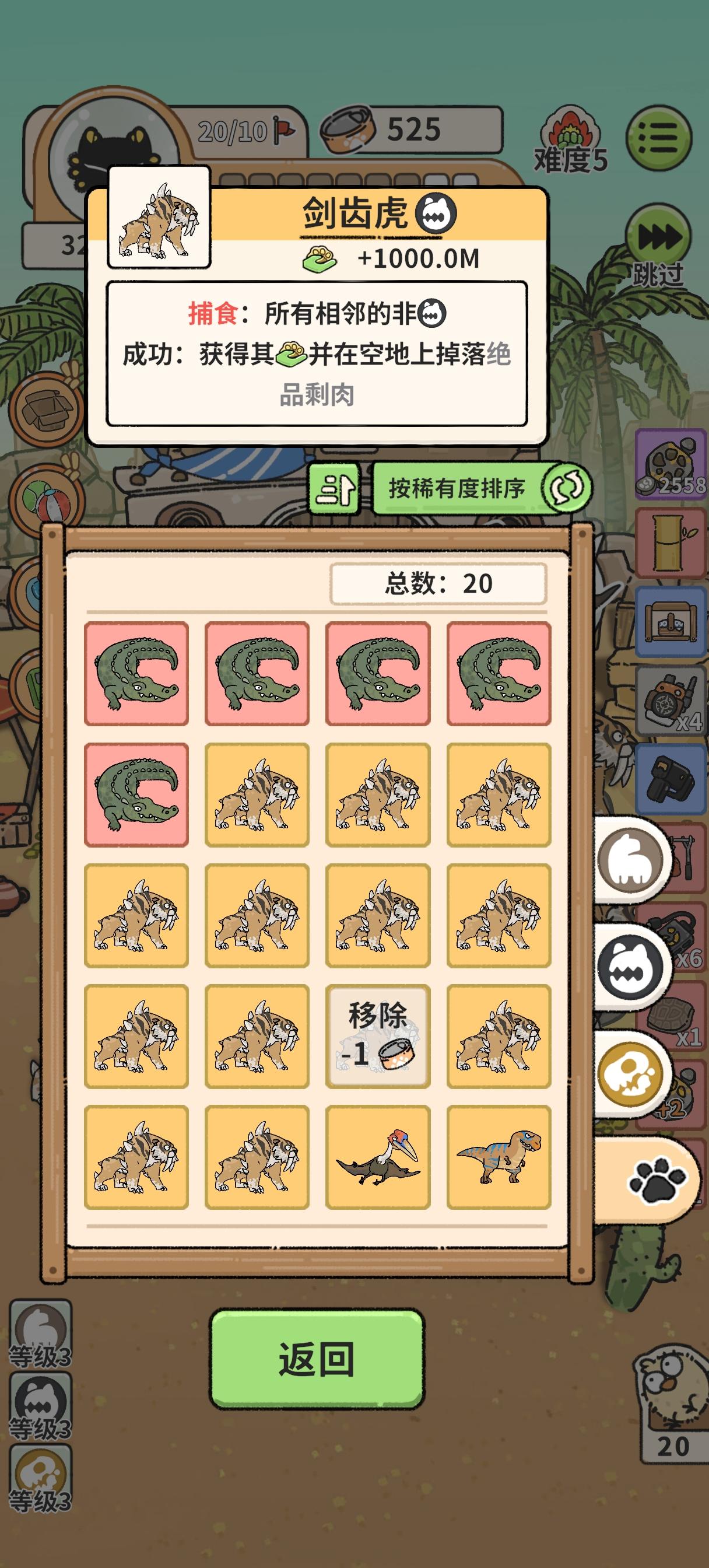 上手:牧羊犬+羊+狼真强!入门:捕食和控制数量是这个游戏的核心…最后想看看化石有啥用……好家伙,直接好家伙,这图里头都是我休闲的玩法结果,瞬间让你金币数出现缩小,让催债的恶毒猫神显得像来讨饭的傲娇小鬼当然,也失去了游戏的乐趣……什么叫我每个阶段还得等八九天才能交租金话不多说,讲下机制,小盗龙*2,开局选化石扫描仪*2,第二只小盗龙*2再乘化石扫描仪……基本产生
