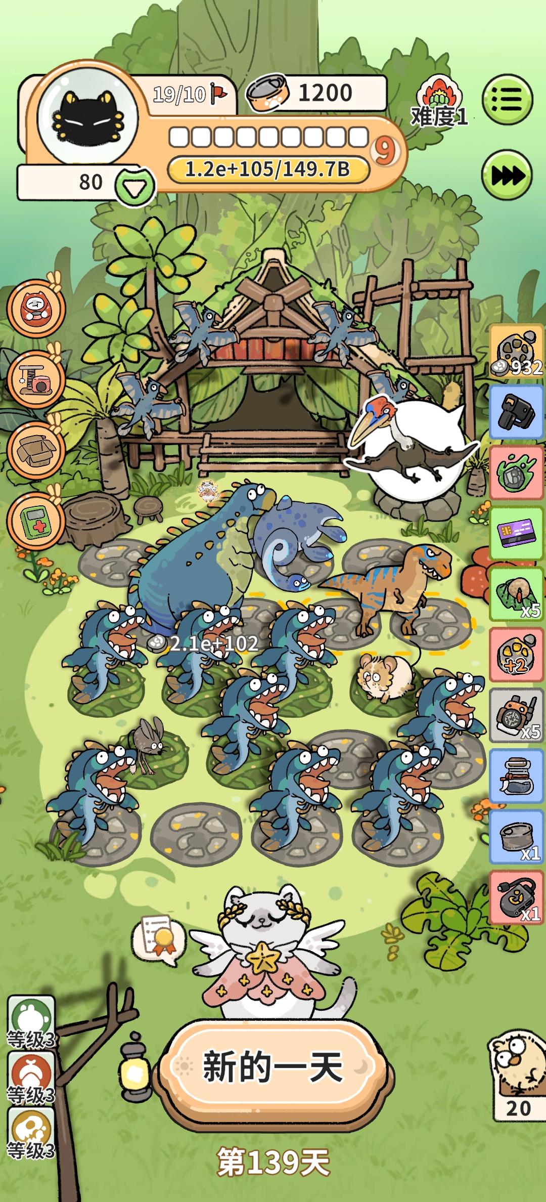 先上图,点到不想点了,罐头算是10万溢出的,pc端同样阵容拿过1100+天还没到达极限#开局玩具>必选:逗猫棒+纸箱子(拿化石扫描仪<获得化石数量x2>+垂耳兔)次选:伊丽莎白圈,电动摇杆(我超级喜欢配合这两个)角色:大骰(5阶段转克鲁克山)局面:必须要场上有迅猛龙(可以的话用大骰技能给它刷一下获得化石数量)#初期场上迅猛龙<3只时优先选择迅猛龙,>3时选择小盗龙,当场上小盗龙持有
