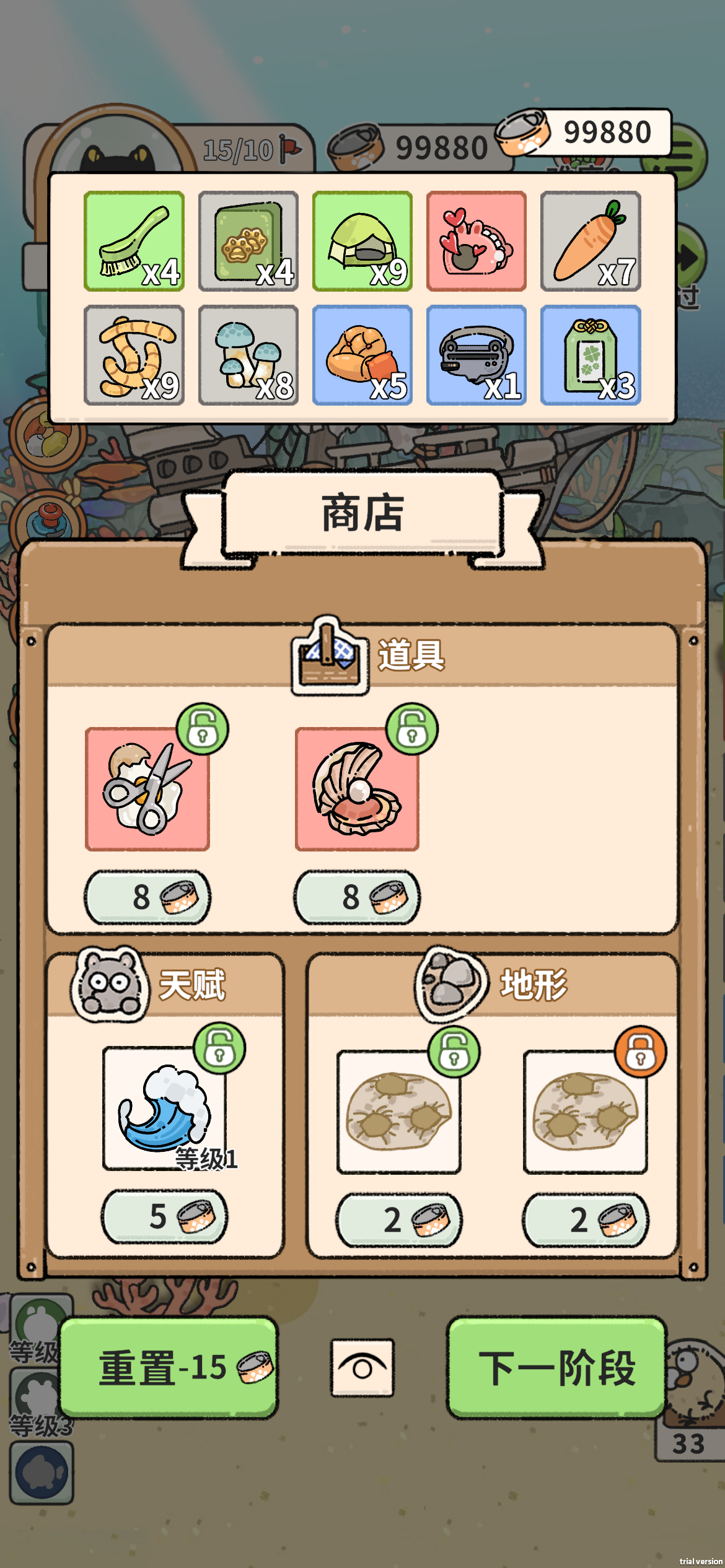我是新手玩家,如果有说错慢慢改正首先先过图,获得纸箱子(开局选择一个蓝色动物和蓝色道具),下图开局选择喜鹊和玉米粒(每回合获得一只鸽子),然后无脑刷,把没用的动物卖了,二十个动物之后把玉米粒卖了,太多动物不行!下图刷到阶段六或者阶段七,绝迹(黄色动物)刷出率高于2%,开刷恐怖鸟,后续无限刷恐怖鸟就行。道具选择:普通:选择经济道具(彩票,信封,午餐)绿色:加固泥巴和鸟居(必须恐怖鸟之后再
