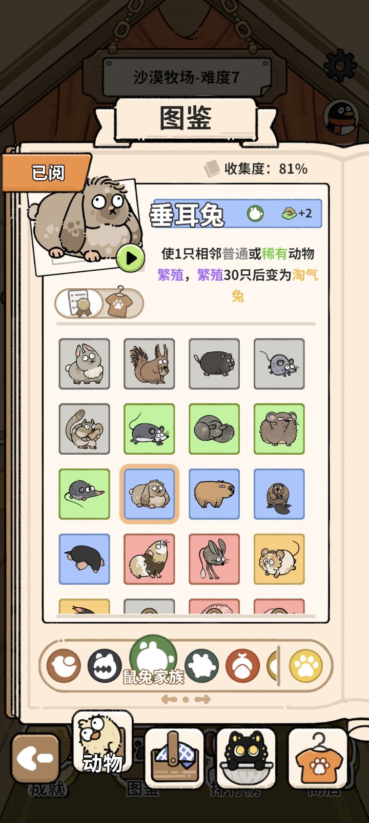 沙漠牧场(不论难度100%过) 【核心:“眼镜蛇”+道具“异常糖果”+食肉动物“湾鳄”/“剑齿虎”/“貂”/“猫头鹰”/“鹰”(这几个食肉动物随便选,最优“湾鳄”→“鹰”最差)】 开始1~4选“鼠”“兔”等繁殖快的,4开始选“食肉动物”吃鼠兔,期间可以慢慢叠“眼镜蛇”了, 同时!!!一定要先多刷商店买下“异常糖果”!!! 一定要买道具“异常糖果”!!! 之后随便玩。 期间攒“蝰蛇”。