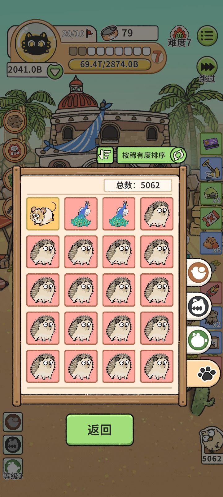 上图排名只是坛主随便打的小号本攻略经过多方对比,刷钱速度堪称前几(包括脚本),有些罗嗦,但是看完可以帮各位少侠无限模式想冲多少冲多少,废话不多说,正片开始局前准备:1.玩具选不倒翁,大饭盆,纸盒子,第四个随意。选按钮摇杆或者激光笔都行2.角色选督头李3.流派选有蹄,鼠兔和爬行开局:利用刷新机制,使开局三个动物有一只小花枝鼠,接着,用纸盒子选一只垂耳兔加一个金铲子,然后用督头李锁定垂耳兔,最后