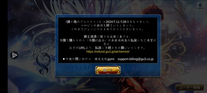 经典手游频倒闭!营运逾八年时光《为了谁的炼金术师》日版随主线故事完结将于11月底结束营运。 继9月初韩国游戏公司NEOWIZ营运的策略RPG《BrownDust-棕色尘埃》宣布于8月13日后终止游戏后,上星期迎来了SQUARE ENIX以及其合作伙伴开发商gumi Inc.联手推出的RPG手机游戏《FINAL FANTASY BRAVE EXVIUS》国际版于2024年10月30日结束营运的噩耗