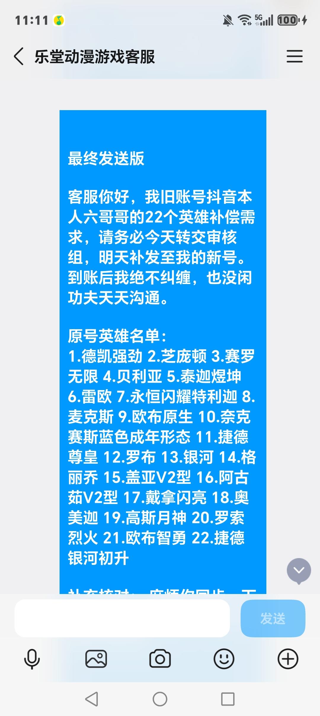 也是你们客服拒绝我的话题,我要补偿22个英雄补偿,补偿到新号里和老把老号里的英雄补偿到新号,还有官方,你们啥时候点点击我关注我一下,我老早关注你们了,你们也关注,这样我只能把客服拒绝的图片,还有补偿的图片发给你们