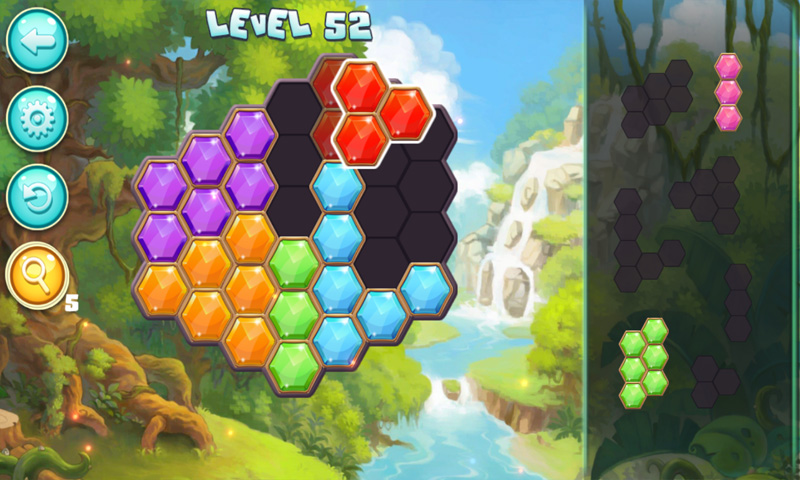 一款过关类型的拼图益智小游戏,通过点击拖动不同形状的六角形方块拼凑成任务图形来完成关卡。关卡的难度会随着关卡等级的提高而增加。游戏中每个关卡都会设定不同的任务图形,玩家需要点击提供的方块将其拖动到游戏场景中间的任务图形区域,然后通过合理的摆放拼凑出完整的任务图形,当所有的图形区域都被填充好后即可完成关卡。关卡中没有时间和次数限制,玩家可以不停尝试直到过关。当遇到难题时可通过使用提示道具来显示一个正确的摆放位置来简化关卡。玩家每通过20个小关或领取登录奖励都可以获取提示道具。合理的使用道具和充分发...