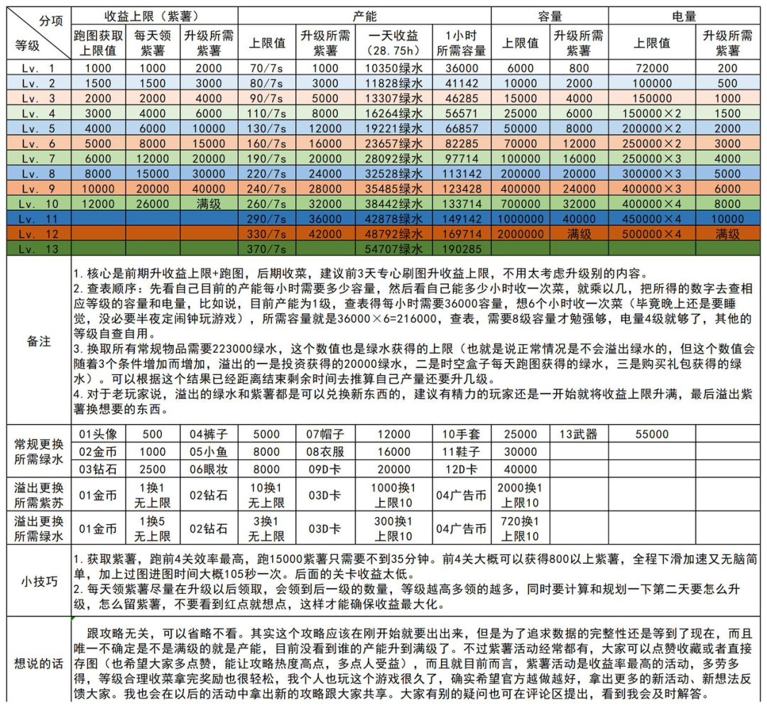 模式跟绿水活动差不多,只是添加了点其他因素,很多人都不知道升什么,以下只是建议 首先呢,想拿投资,不氪金是不太可能了,如果想拿投资,这边建议氪时空盒子,当然, 0氪这个活动也是可以做完的,只不过氪金是拿的比较快而已 ☞懒得收或者没时间收的玩家,建议先升情绪和箱子,两者需要平衡,所以两个得一起升,至于怎样才能平衡,可以根据抚摸上方的时间和箱子多久收满来计算,其他数值可以适当增加(收集速度会较慢) ☞