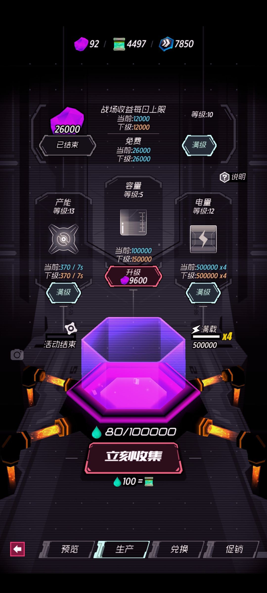 还挺赶的,基本半个小时收一次了,每天的加速充能都用完了,基本上每天砖石买完,偶尔用一次加速币,最后两天又刷了3000币,才拿到手。一开始升每日上限和产能了,过两天发现电量跟不上,又升的电量。总的来说还好吧,基本12点刚过刷完今天紫色石头,升级,等白天完成,平均一个小时收一次。