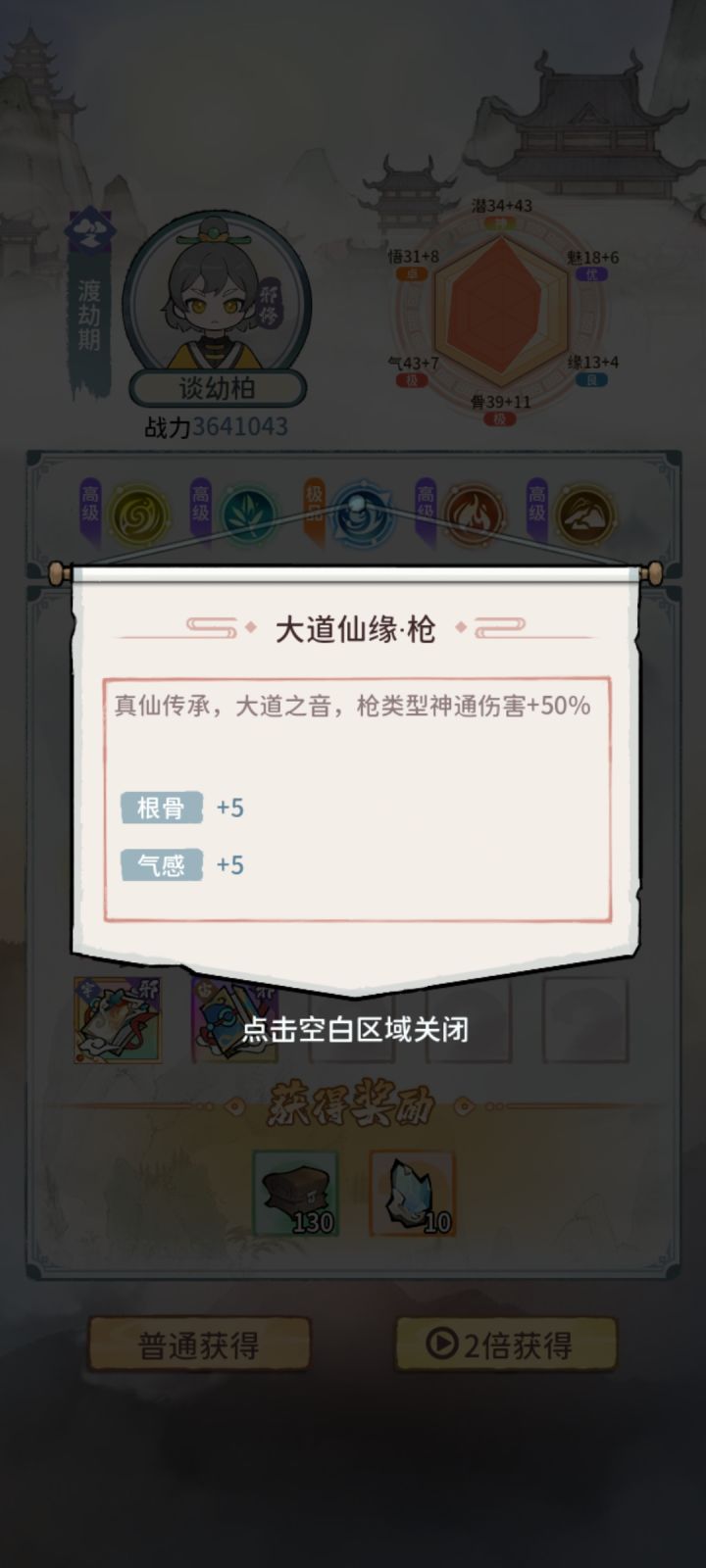 我决定给予其大师兄的荣誉名称玩到现在终于是稍微明白了,讲一下怎么玩,一直到拥有第一位渡劫弟子之前,都是新手期,新手期无脑怼潜力,潜力怎么高怎么整,尽快做出第一位渡劫弟子拥有第一位渡劫弟子之后,就解锁自动游历渡劫上限啦,这时候只需要每天重复刷渡劫弟子即可,主要是装备 心法和词条,没有渡劫装备的是弱鸡,没有宇宙级别心法的也是弱鸡,没有继承红词条的还是弱鸡后面就是无止境的日常刷弟子收菜啦