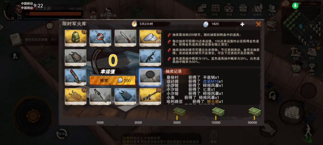 1炸弹3铁斧1石斧10开锁器