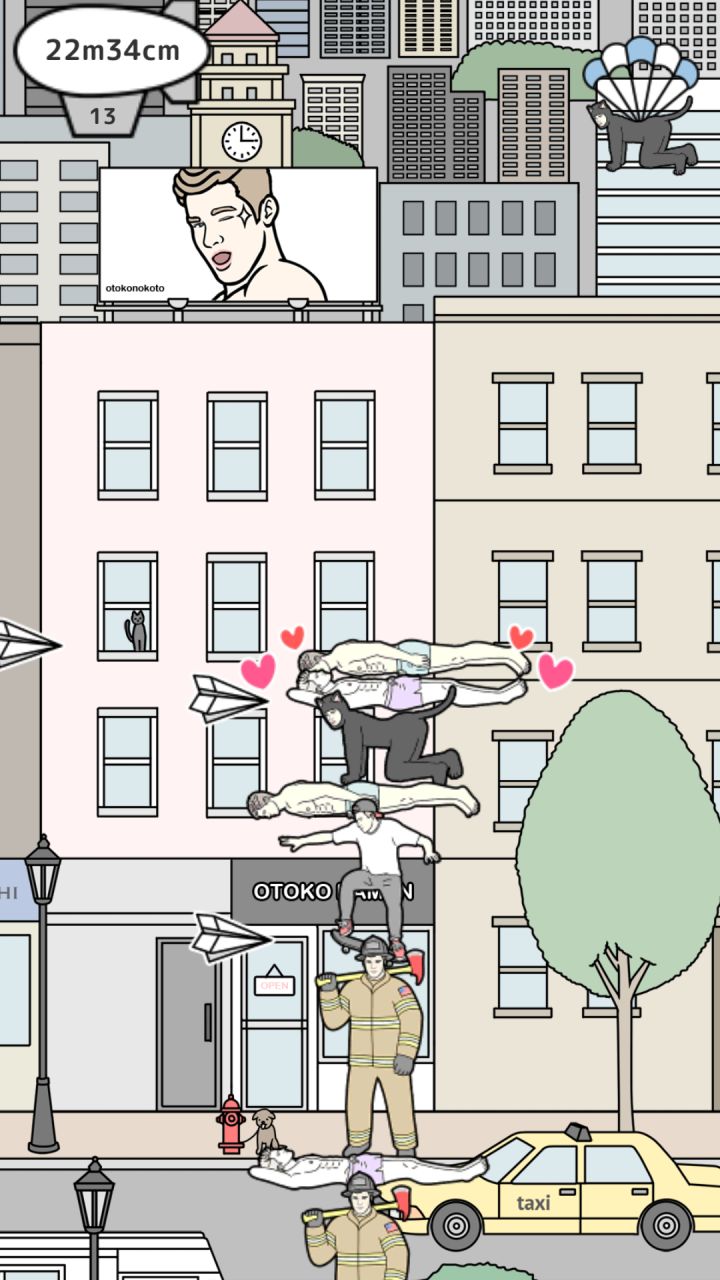 💥不要被开头的正经画风误导!【操作💨】点人脸 (左边按钮可以切换难易度)把右上角角色移至中间的平台反复重叠角色保持人塔平衡即可若空中有障碍物阻扰及时点掉就行了高度越高越难玩【彩蛋】把两个互相搭配的角色叠在一起就会出现小爱心喔【角色】角色姿势都很迷总共70个角色慢慢玩喔【结尾】下面是我做的一张改图随便拿走!:-O