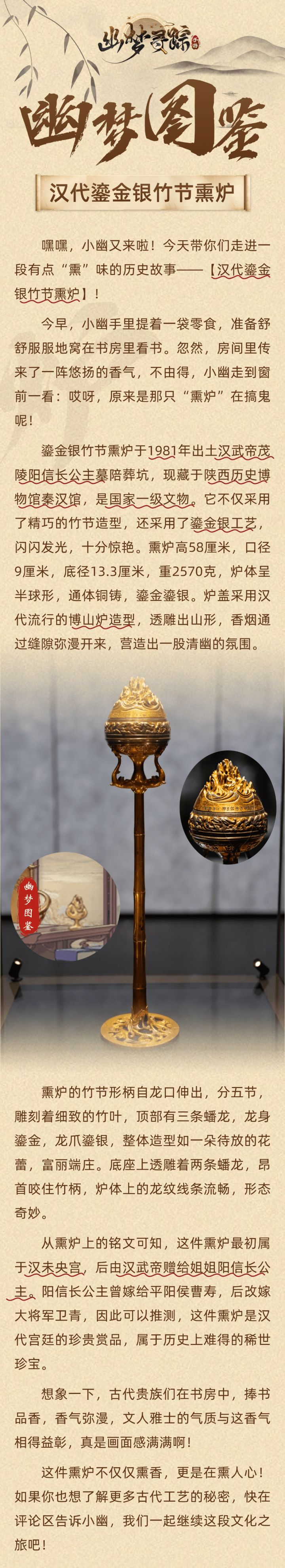 幽梦图鉴|汉代鎏金银竹节熏炉