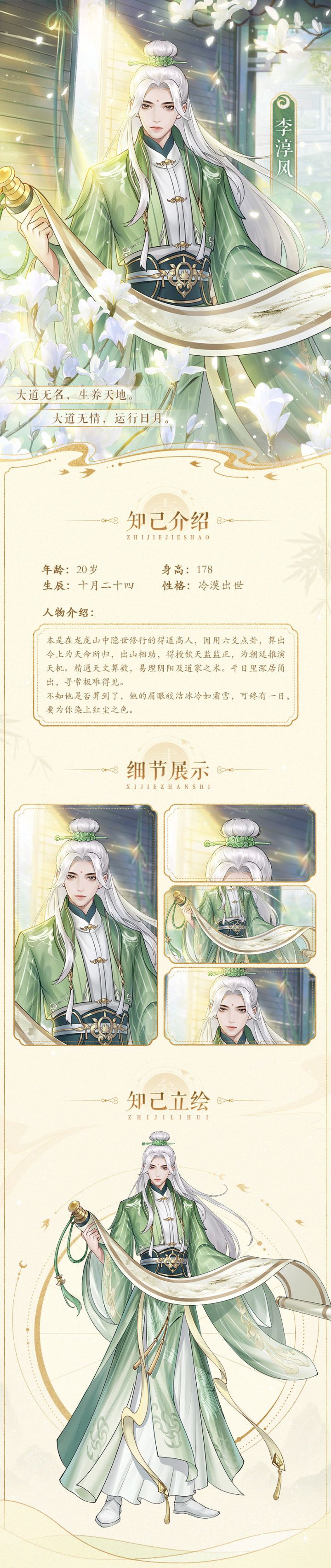 『爻占卦算天下事,却唯独算不出关于你的一切。 』身姿挺拔,白肤银发,眉心一点朱砂,身着一袭绿袍,这到底是哪一位知己?郡主们快随小幽看过来~今天要介绍的角色是号称“算无遗策”的李淳风,他卜算能力之强虽已名扬海外,但本人却十分低调,小幽可是费了好大功夫,才打听到有关于他的信息噢~————留言互动————如何才能与这位隐世高人相遇呢,郡主们不妨交流一下,看看自己能不能“算”出与他的故事呀~在评论