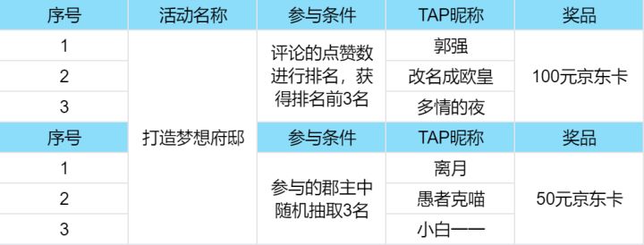 获奖名单 | 打造梦想府邸!让我看看谁的府邸最受欢迎~