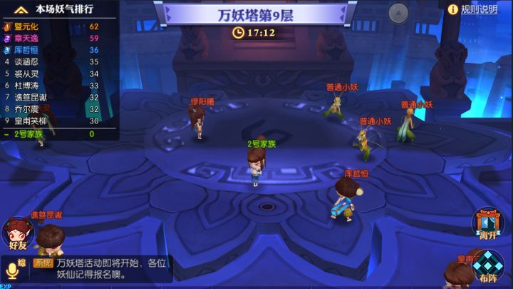 开启条件:玩家等级到达20级,即可参与该活动;当服务器解锁跨服时,该活动下一次开启时,将进入跨服状态 开启时间:万妖塔活动报名时间为每周一、周五的05:00-20:09;万妖塔活动开启时间为每周一、周五20:10-20:30; 具体玩法介绍万妖塔总共分为9层,将根据诸位妖仙报名情况进行分层。在万妖塔中,可通过击杀小怪获取妖气,并有概率获得万妖宝珠;获得万妖宝珠的妖仙,实力将变强,