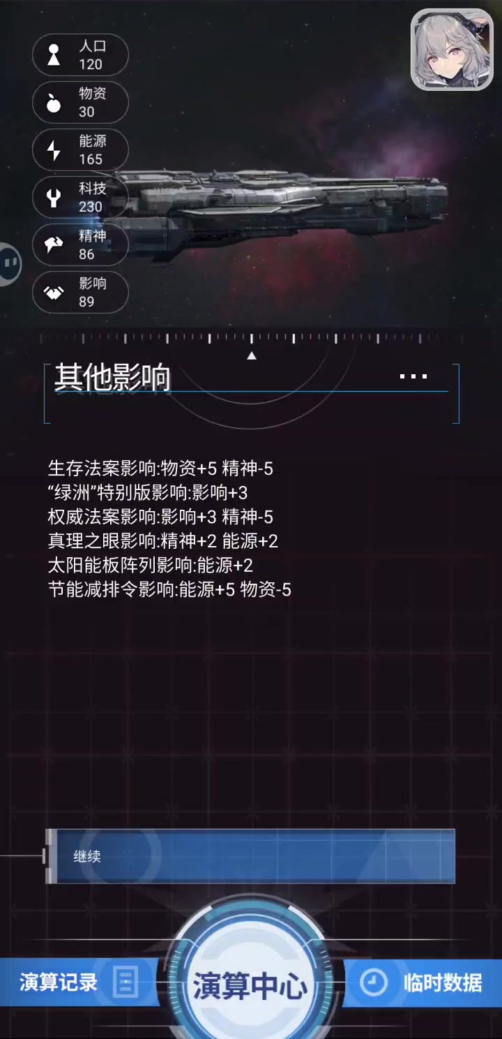 科技=武器技术,开采能源,获取食物,地方调查在保证能源足够的情况下,回合越多,海盗越厉害,在前期科技300以上,可以打海盗,在回合45以后,则不建议打海盗容易暴毙。能回应信号就回应信号,最多就是海盗设局,耗费10能源即可逃跑,但大多数为物资和能源,少数为科学家的科技或者和工厂进行交易。在能源或物资低于20,可以去抢普通的飞船。在精神低于50且无法回正不要去颁布消耗精神的法令。开局先颁布能