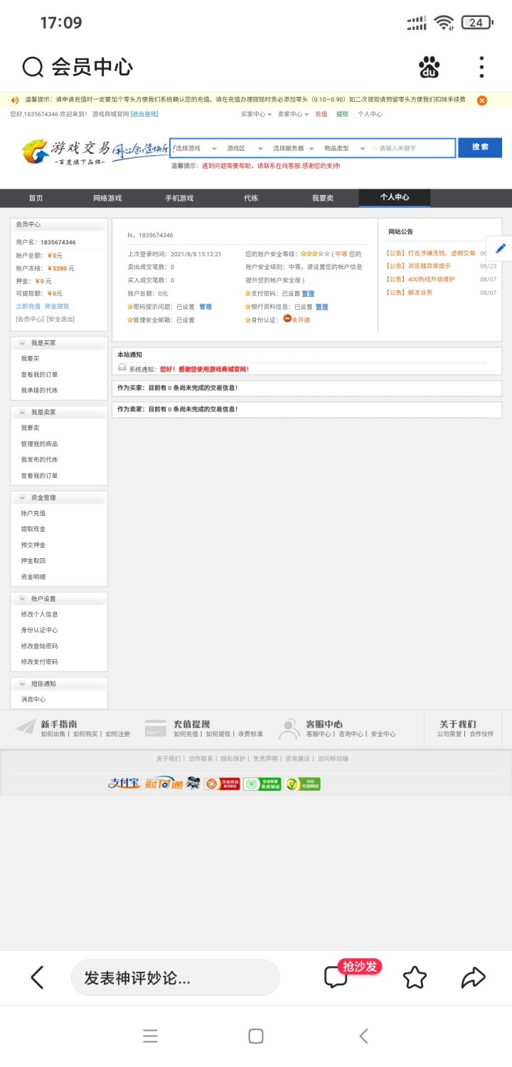 游戏里遇到一个ID叫杨幂的,问我卖不卖号,然后我想着要退坑了。就同意了,说让我在百度平台交易,然后把钱提现的时候说信息错误把钱冻结了,让充值500解冻,想着把钱解冻给别个买家就充了,说没有零类似于,500.1,然后把钱又冻结了,当时蛮荒的,就想着钱冻结了,就把账号给别个买家算了,然后让充值4400.1,就充了,提现的时候又把钱冻结了,我就去找买家,买家就一直维护平台,然后报警了,立案,游戏没错,给大家提个醒,百度平台"百到购",这个QQ号,别再被坑了,自己被坑了4900,算是买个教训,大家注意一下!!!!