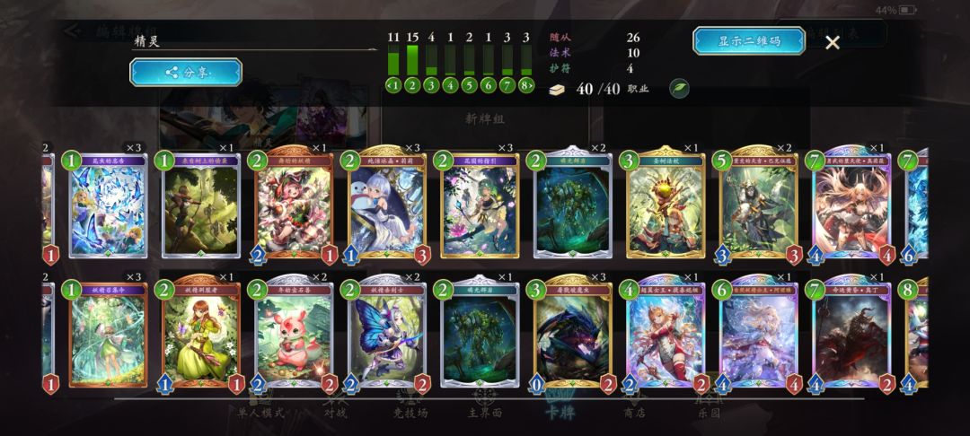 邀请码:gKxck3Q 已过剧情,一起互刷吧 再分享一套造价便宜的卡组,只需要1虹卡,12金卡,没错就是虫妖,上手简单,快来试一试吧! 游玩思路是开局保留533,虫子,还有一两费给妖精的卡牌,最好是水之妖精,对局思路是在稳定对局的过程中,尽量保留0~1费的资源卡,就比如妖精,玩的时候手上最少都要有两张妖精,这是比较稳定的,能铺场尽量铺场,在手上低费资源不多的时候要用533进化来解场,不要消耗手上为