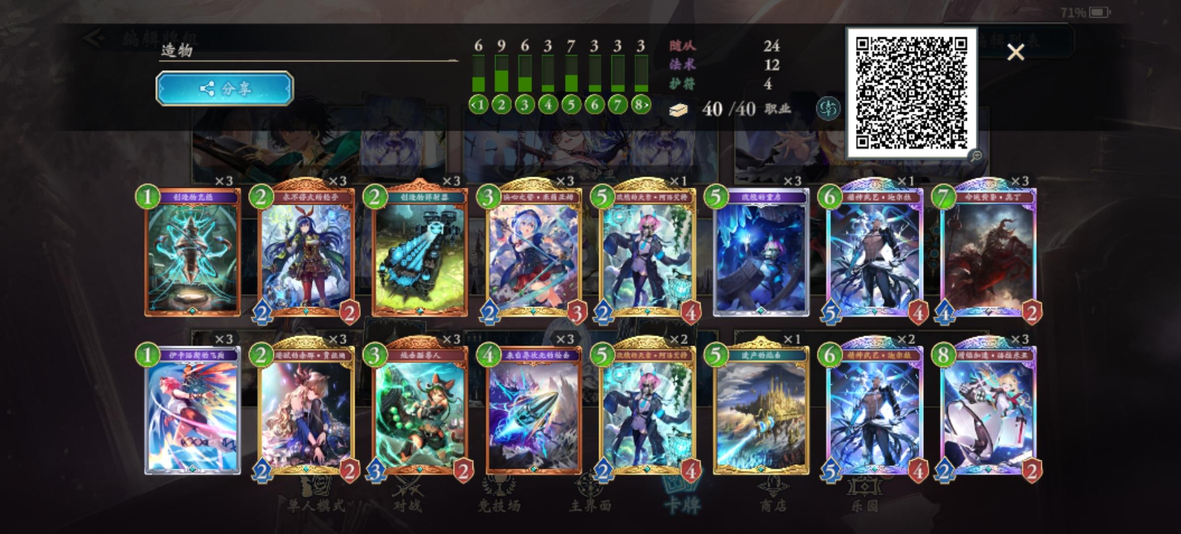 周末玩完就来高强度打牌了,打了一小波连胜,顺便优化了下卡组 造物这卡组的问题是幽默的抽一打一,没过牌,太吃右手了,一个没抽好别说赢了,任务都做不完,所以我就踢了几张下级给核心的卡,塞了俩张欧斯,带俩655,然后两张oqs(别问,问就是抽卡又欧了),稳一下中期质量和解场蹭血。 首先是,经典的造物卡组越玩越强,打的越多胜率越高。这卡组主打一手灵活,对哪个职业都有自己的打法,不过比较吃经验和对其他卡组的