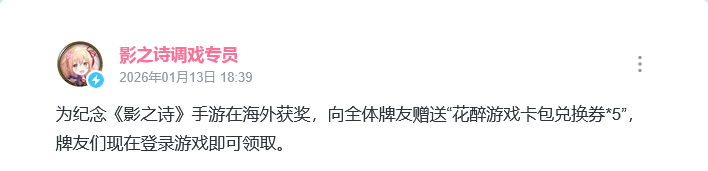 影之诗:喜讯传来!全服白嫖卡包!
