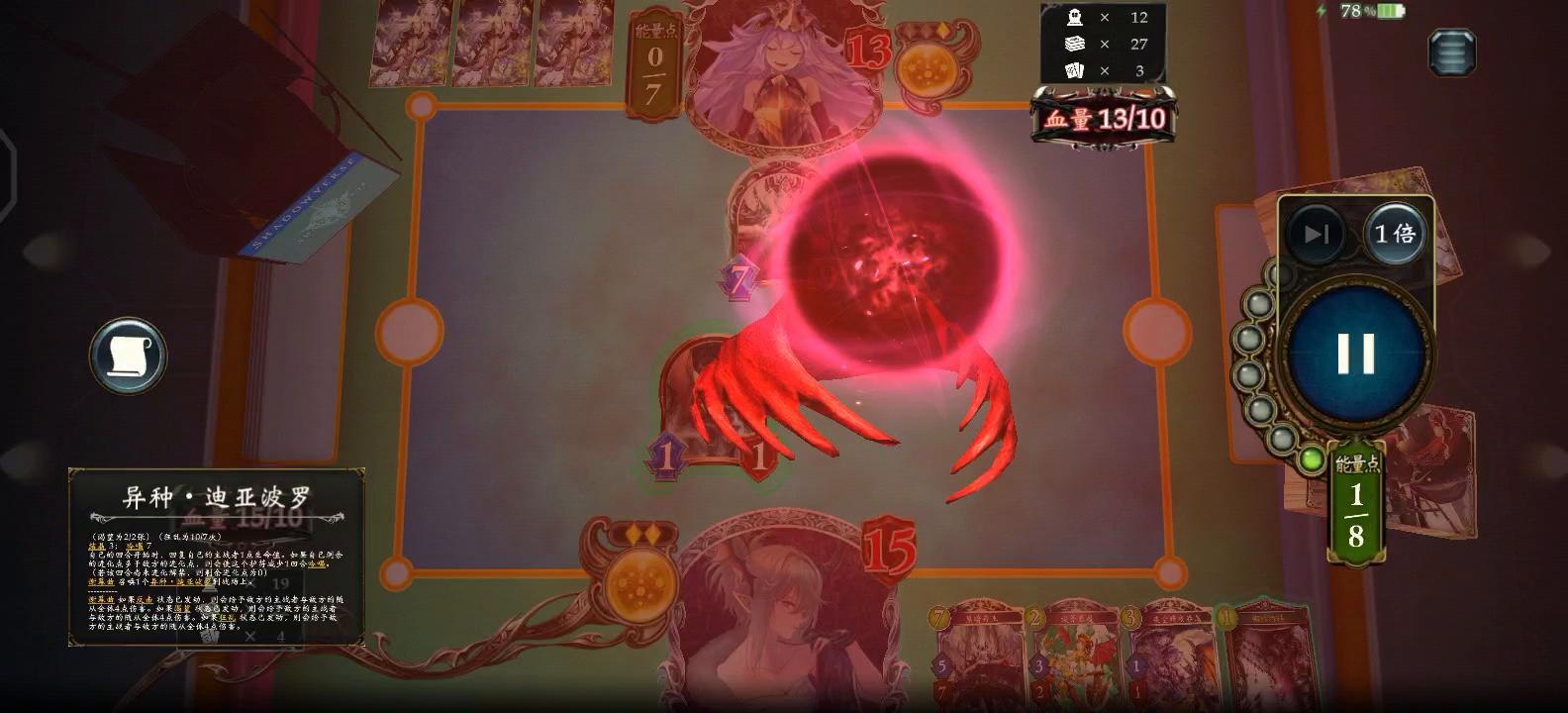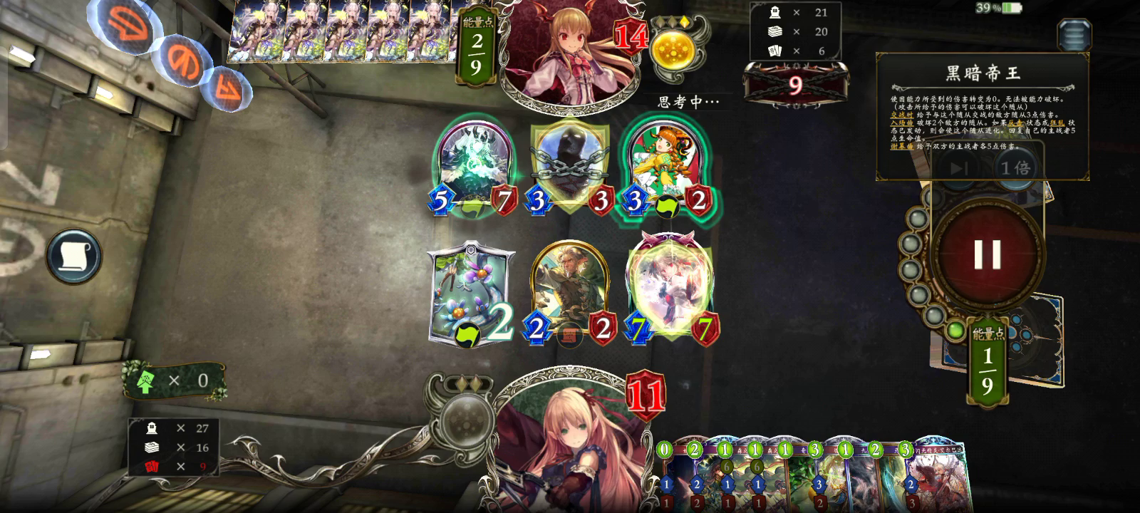 这是双选,看上去似乎是我逆天翻盘,实际上是我败北了。因为人家都解放奥义了,四血时已是死局。那为什么我能赢了,那是因为对面是萌新,犯了一个萌新都会犯的错误。 当时我身为萌新的时候,总是会有这么一个想法:这局应该这么打,但右手拿到的牌干扰了我的计划,虽然我打了右手的牌,赢面很大,但是感觉被发牌员支配了,我相信我的游戏计划,我要站在卡组的角度上,堂堂正正的战胜对手。 相信我,发牌员不一定能让你赢,但有100种方法让你输。 那么,如果对面没有打错,我是不是赢不了?并不是。如果我六费抽到开头换牌时被我换下去的海盗,爆能解完对面只剩鼯鼠,那么他整个卡组都打不过我的节奏。我要是被发牌支配,能赢,不寒碜。 总之一句话,坚定不移地支持发牌员的引导,始终贯彻一个右手打牌的方针,要学会做一个合格的分奴。