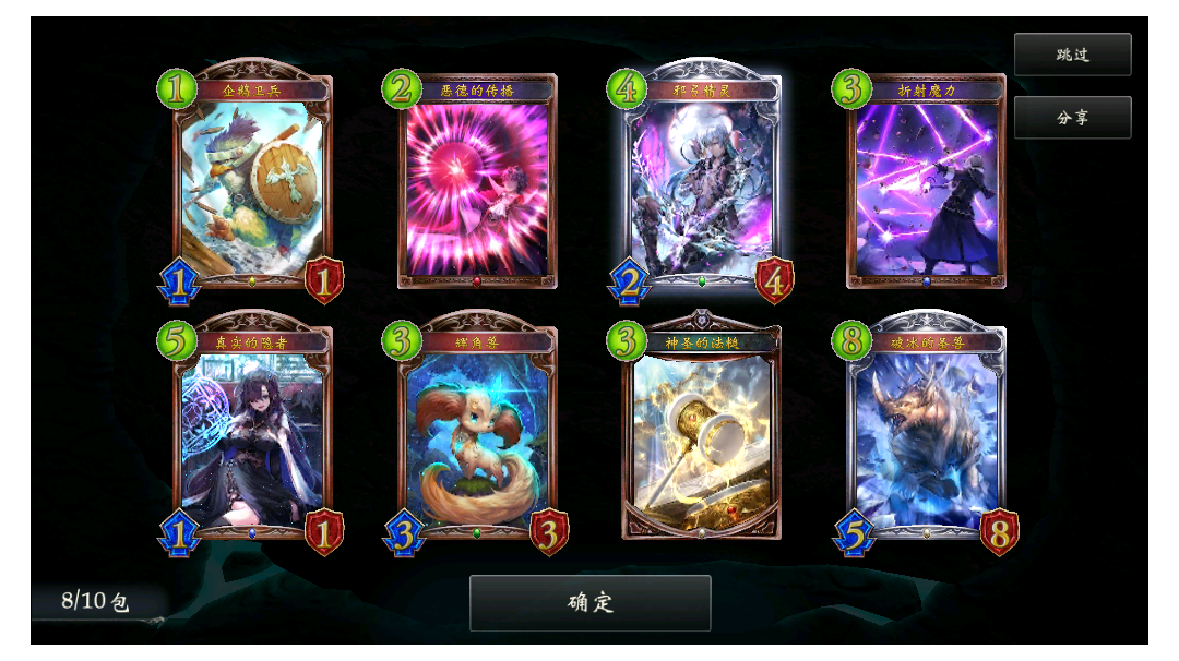 一包卡竟然可以开出8张闪卡(有炉石金包那味了)😁😁😁