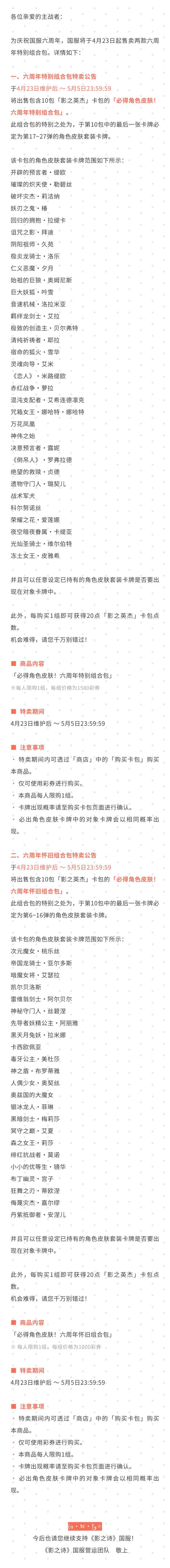 必得角色皮肤!六周年特别组合包特卖公告#影之诗