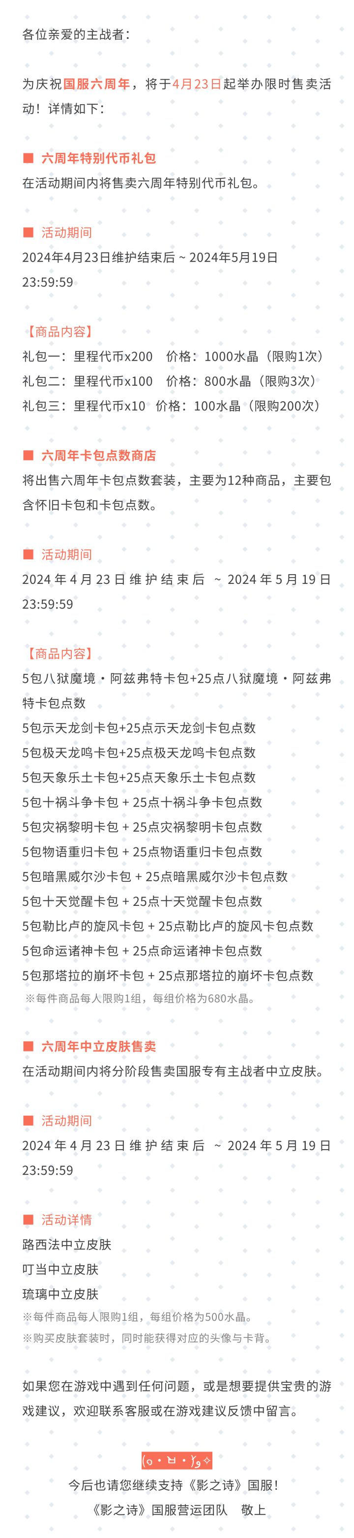 六周年特别充值活动公告#影之诗