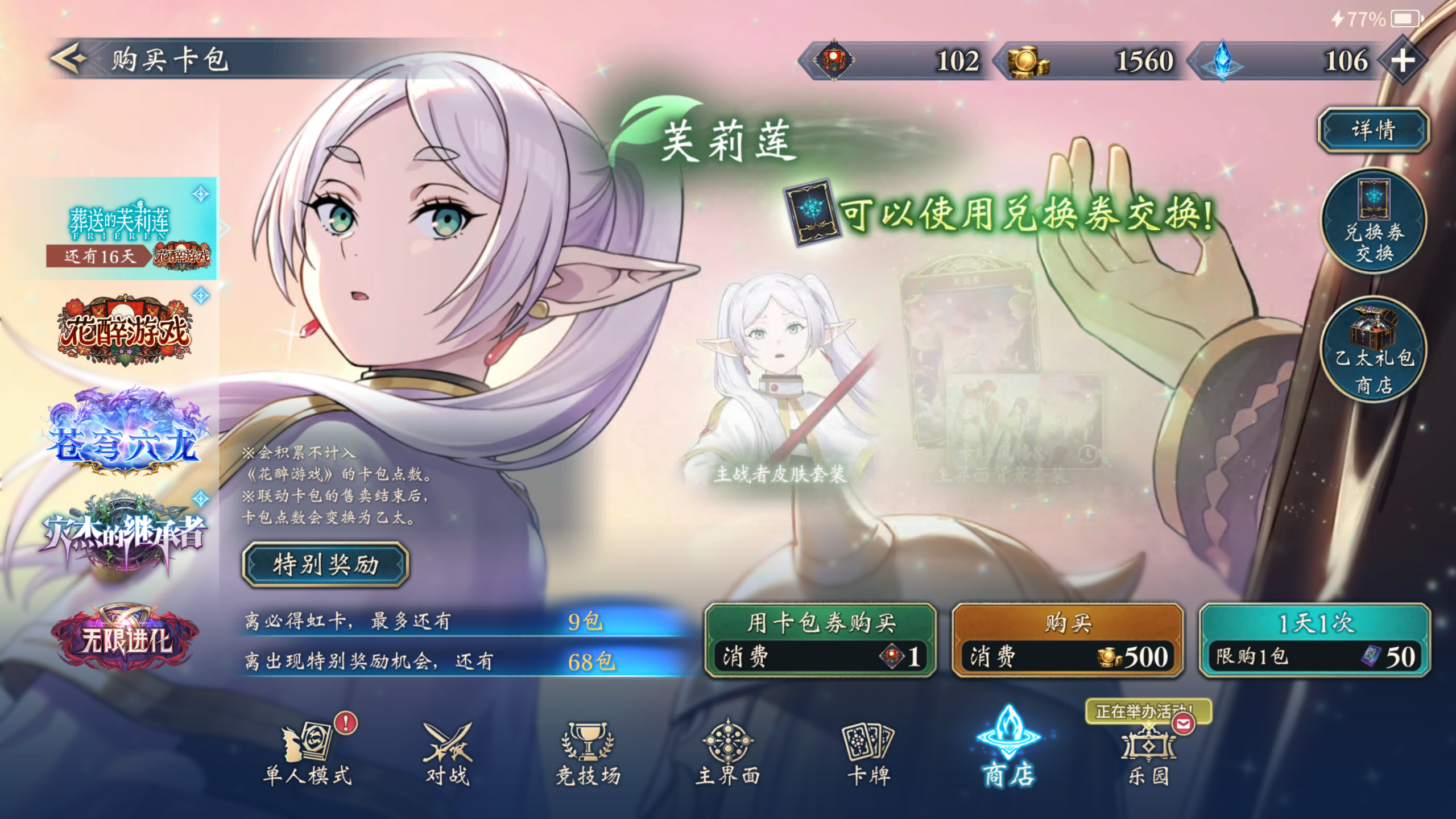 我自己也算半个萌新,也不知道这些话算不算建议,但还是想请各位新人看一下😌①关于这游戏的资源问题,我只能说前期金币和以太是非常的缺,如果不考虑皮肤抽取,就是逮着一个版本使劲抽。有条件的可以买两个月卡,然后用月卡返的水晶去买通行证(还要再补点水晶),通行证也会返还水晶。对于那些想抽卡玩的舒服又具备氪金条件的玩家来说算是性价比最高的。当然如果不氪金就只能跟我一样有500金币就抽吧,当然如果要跟我一