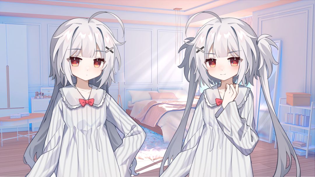 一大早,言叶就兴冲冲地地把自己和小忆做完的习题册全都拿了出来,在我暂时用作办公的书桌上整整齐齐排列开。 (言叶)“待会sensei看到了,肯定会很高兴吧!” 小忆打着哈欠走出房间,睡意未消。 (小忆)“言叶也有进步嘛,比之前聪明了不少呢。” (小忆)“已经可以和吾做同一个难度了~” (言叶)“那当然…唔,不对!小忆你明明是在夸自己好吧!” (小忆)“谁让言叶总是笨笨的。” (言叶)“你说谁笨!” 言