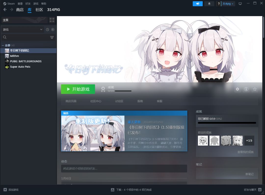 #冬日树下的回忆 鉴于部分sensei可能不便长时间使用电脑,但又没来得及下载1.5重制版,或是说更新1.6版本后仍然想在手机上游玩,当然看b站的视频也是一种选择,这里提供一个基于winlator的解决方案。 以下是具体步骤可以配合图片阅读: 1.在steam上下载冬日树下的回忆,找到游戏本体并压缩。 2.传输压缩包到手机上(推荐使用qq,微信似乎传不了1G以上的文件),将其移动到Downloa