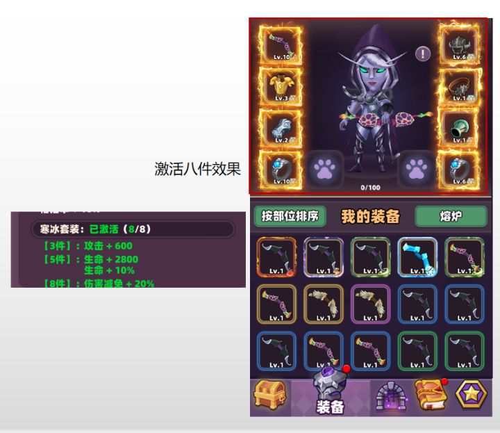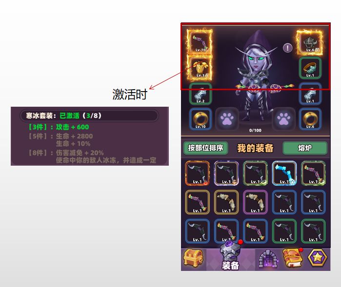 套装来源:套装可通过掉落或附魔装备获得。1.套装图标升级。2.套装满足三件激活时起,套装特殊显示。