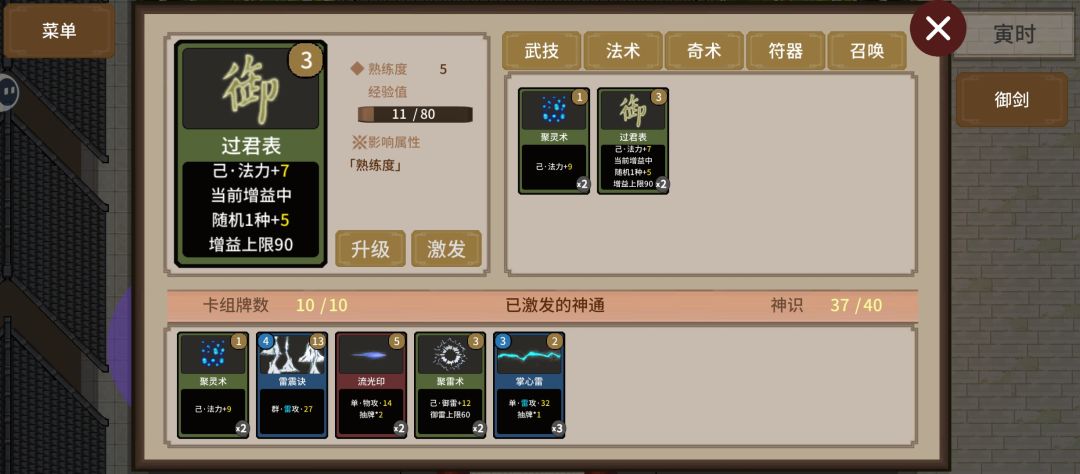 金丹期每回合抽四张,此卡组能保证每回合十动,带了七张雷攻牌,在御雷层数叠满的情况下,每回合纯伤接近1700