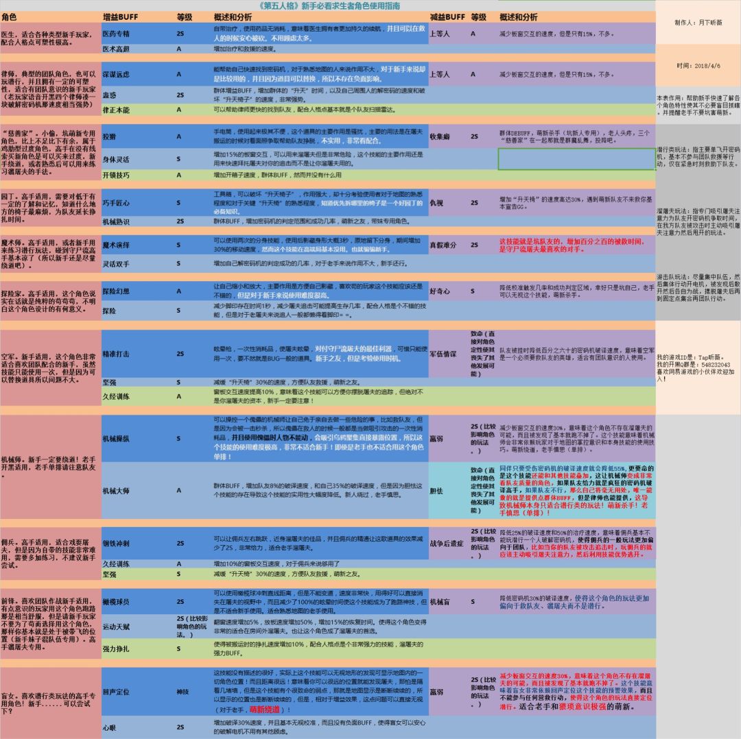 [申精]《第五人格》新手必看求生者表格!角色分析选择一步到位