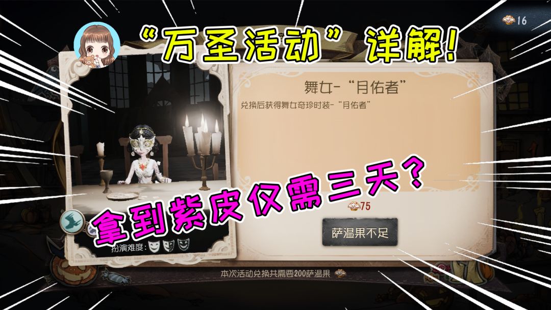 第五人格:万圣活动详解!舞女紫皮要肝多少局?先知历战猎人必换