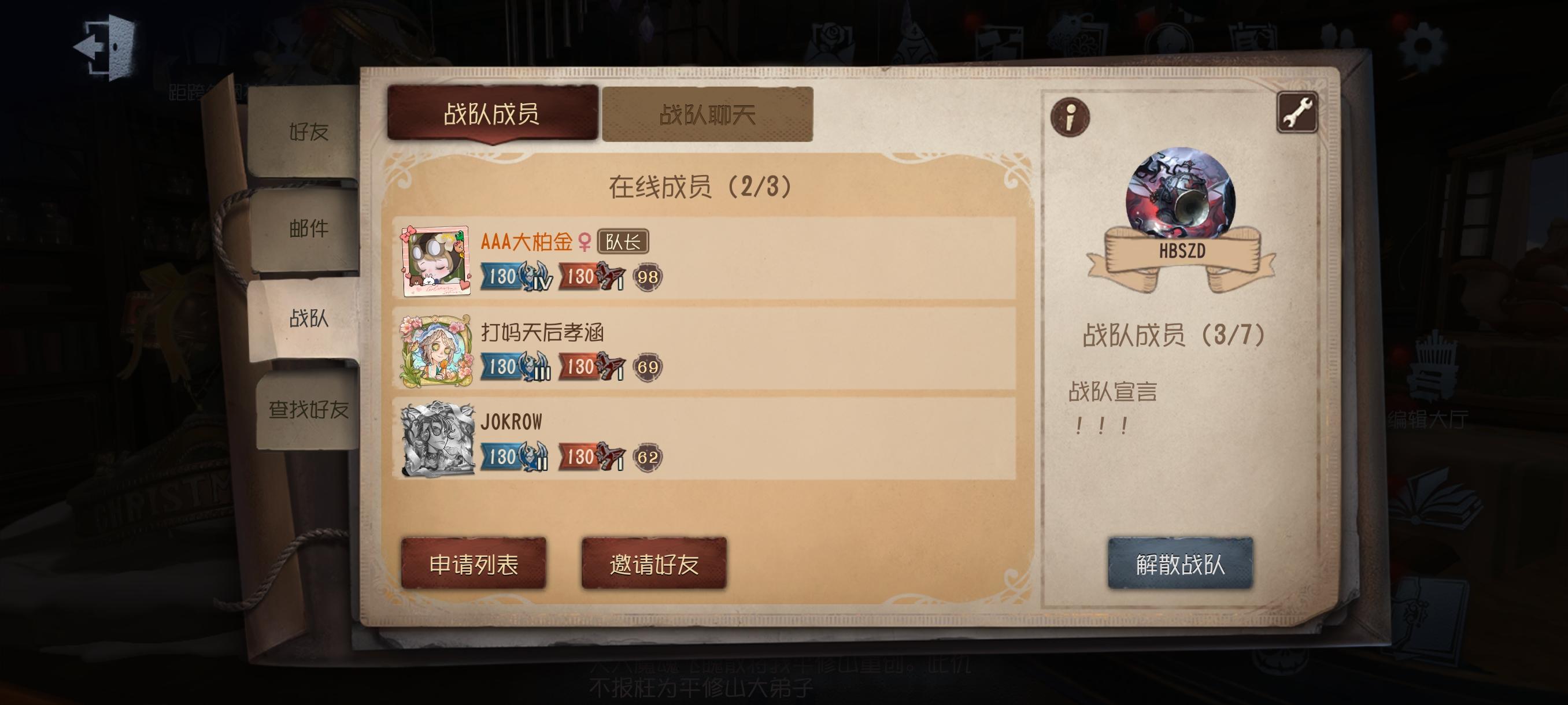 战队3缺4,打满就行!结束可留可退,宝宝们快来,留id我来➕#第五人格战队 #第五人格战队招人