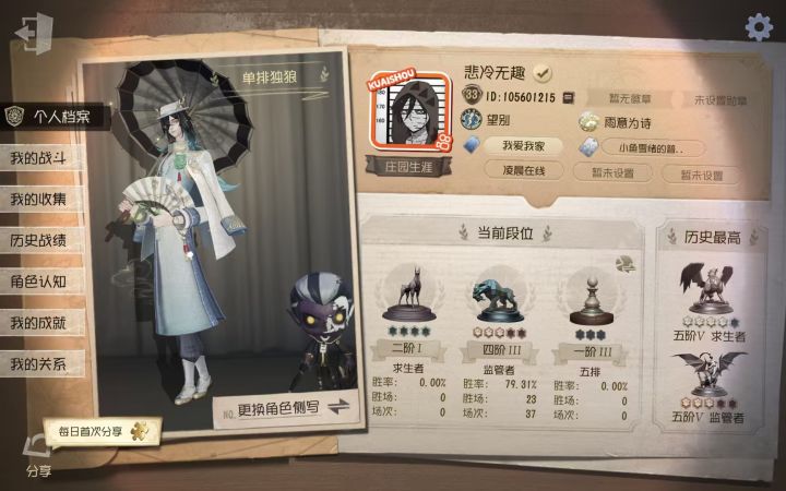 【稀世时装】空军-翡色云雀之歌 正义的云雀啊,你永远歌唱着飞翔,飞翔着歌唱。而整个世界,正侧耳倾听。 【奇珍时装】鹿头-塞努诺斯 当林木尽焚,新羽复生,人们已无法读懂,于上古树脉间篆刻的封印…… 【奇珍时装】幻灯师-知更鸟 知更鸟,知更鸟,它隐姓埋名,藏起秘密。它只唱歌给人们听,它什么坏事都不做。 #第五人格五骥映春 #第五人格